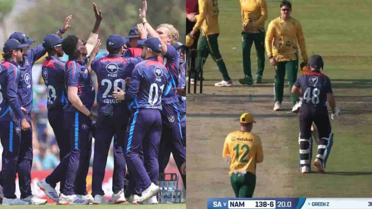 ಇತ್ತೀಚೆಗೆ 2026 ರ ಟಿ20 ವಿಶ್ವಕಪ್ಗೆ ಅರ್ಹತೆ ಪಡೆದಿರುವ ನಮೀಬಿಯಾ ತನ್ನ ಕ್ರಿಕೆಟ್ ಇತಿಹಾಸದಲ್ಲಿ ಅತಿದೊಡ್ಡ ಗೆಲುವು ದಾಖಲಿಸಿದೆ. ರೂಬೆನ್ ಟ್ರಂಪೆಲ್ಮನ್ ಅವರ ಸ್ಮರಣೀಯ ಪ್ರದರ್ಶನದ ಆಧಾರದ ಮೇಲೆ ನಮೀಬಿಯಾ, ದಕ್ಷಿಣ ಆಫ್ರಿಕಾವನ್ನು ಟಿ20 ಪಂದ್ಯದಲ್ಲಿ 4 ವಿಕೆಟ್ಗಳಿಂದ ಸೋಲಿಸಿದೆ. ಯಾವುದೇ ಸ್ವರೂಪದಲ್ಲಿ ನಮೀಬಿಯಾ ಮತ್ತು ದಕ್ಷಿಣ ಆಫ್ರಿಕಾ ನಡುವಿನ ಮೊದಲ ಅಂತರರಾಷ್ಟ್ರೀಯ ಪಂದ್ಯ ಇದಾಗಿದ್ದು, ಈ ಪಂದ್ಯದಲ್ಲಿ ನಮೀಬಿಯಾ ತಂಡವು ಐತಿಹಾಸಿಕ ಗೆಲುವು ಸಾಧಿಸಿದೆ.