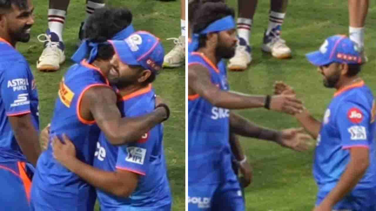 ಇಂಡಿಯನ್ ಪ್ರೀಮಿಯರ್ ಲೀಗ್ 2024 (IPL 2024) ಟೂರ್ನಿ ಆರಂಭಕ್ಕೆ ಒಂದು ದಿನವಷ್ಟೆ ಬಾಕಿಯಿದೆ. ಈಗಾಗಲೇ ಎಲ್ಲ ಫ್ರಾಂಚೈಸಿಗೆ ಆಟಗಾರರ ಸೇರಿಕೊಂಡಿದ್ದು, ಅಭ್ಯಾಸ ಶುರುಮಾಡಿಕೊಂಡಿದ್ದಾರೆ. ಮುಂಬೈ ಇಂಡಿಯನ್ಸ್ ಕೂಡ ತನ್ನ ತವರಿನಲ್ಲಿ ಪ್ರ್ಯಾಕ್ಟೀಸ್ ಮಾಡಿದ್ದಾರೆ. ಮೊದಲ ಅಭ್ಯಾಸ ಅವದಿಯಲ್ಲಿ ಮುಂಬೈ ಇಂಡಿಯನ್ಸ್ ಆಟಗಾರರು ಮೈದಾನದಲ್ಲಿ ಇರುವಾಗ ವಿಶೇಷ ಘಟನೆ ನಡೆಯಿತು. ಇದರ ವಿಡಿಯೋ ಸಾಮಾಜಿಕ ಜಾಲತಾಣಗಳಲ್ಲಿ ವೈರಲ್ ಆಗುತ್ತಿದೆ. ಎಂಐಯ ಮಾಜಿ ನಾಯಕ ರೋಹಿತ್ ಶರ್ಮಾ ಮತ್ತು ಹಾಲಿ ಕ್ಯಾಪ್ಟನ್ ಹಾರ್ದಿಕ್ ಪಾಂಡ್ಯ ಮೈದಾನದಲ್ಲಿ ಪರಸ್ಪರ ಮುಖಾಮುಖಿ ಆಗಿ ತಬ್ಬಿಕೊಂಡರು. ಆದರೆ, ಈ ವಿಡಿಯೋದಲ್ಲಿ ರೋಹಿತ್, ಹಾರ್ದಿಕ್ ಅವರನ್ನು ಒಲ್ಲದ ಮನಸ್ಸಿನಿಂದ ಅಪ್ಪಿಕೊಂಡಂತೆ ಕಂಡುಬಂತು.