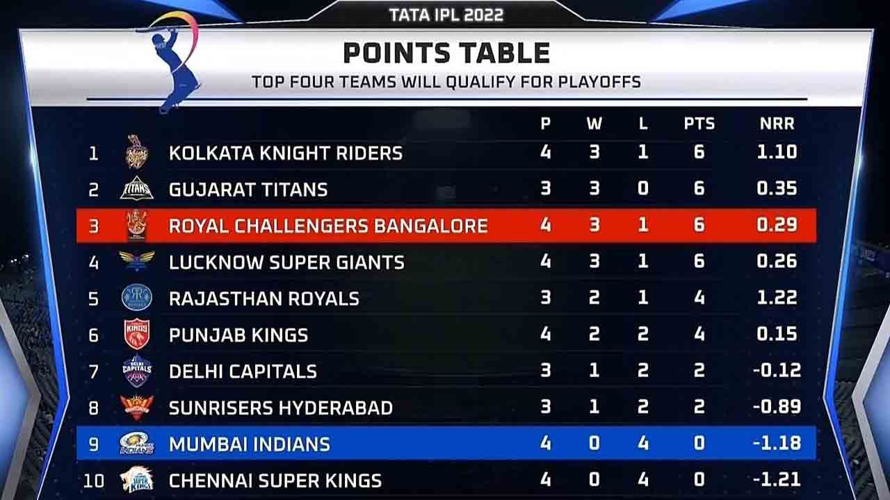 IPL 2022 Points Table: ಪಾಯಿಂಟ್ ಪಟ್ಟಿಯಲ್ಲಿ ಮೂರನೇ ಸ್ಥಾನಕ್ಕೆ ಜಿಗಿದ ಆರ್ಸಿಬಿ: ಪಾತಾಳದಲ್ಲಿ ಸಿಎಸ್ಕೆ, ಮುಂಬೈ