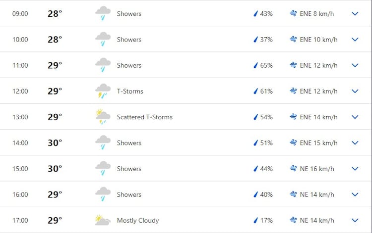 ಈ ಸಮಯದಲ್ಲಿ ಮಳೆಯ ಸಂಭವನೀಯತೆ ಶೇಕಡಾ 49 ಕ್ಕೆ ಇಳಿಯಲಿದೆ. ಮುನ್ಸೂಚನೆಯ ಪ್ರಕಾರ ಸ್ಥಳೀಯ ಕಾಲಮಾನ ಮಧ್ಯಾಹ್ನ 3 ಗಂಟೆಯವರೆಗೆ ಅಂದರೆ ಭಾರತೀಯ ಕಾಲಮಾನ ಮಧ್ಯರಾತ್ರಿ 12:30 ರವರೆಗೆ ಲಘು ಮೋಡಗಳಿದ್ದು, ಶೇ.35 ರಿಂದ 40ರಷ್ಟು ಮಳೆಯಾಗುವ ಸಾಧ್ಯತೆ ಇದೆ. ಈ ನಡುವೆ ಒಂದಷ್ಟು ಪಂದ್ಯ ನಡೆಯುವ ಸಾಧ್ಯತೆ ಹೆಚ್ಚಿದೆ. ಸಂಜೆ 4 ಗಂಟೆಗೆ ಮತ್ತೆ ಮಳೆ ಆರಂಭವಾಗಲ್ಲಿದ್ದು, ಇದರ ಸಂಭವನೀಯತೆ ಶೇಕಡಾ 50 ಕ್ಕಿಂತ ಹೆಚ್ಚಾಗಲಿದೆ. ಅದೇ ಪರಿಸ್ಥಿತಿಯು ಸ್ಥಳೀಯ ಸಮಯ ಸಂಜೆ 5 ಗಂಟೆಗೆ ಇರುತ್ತದೆ.