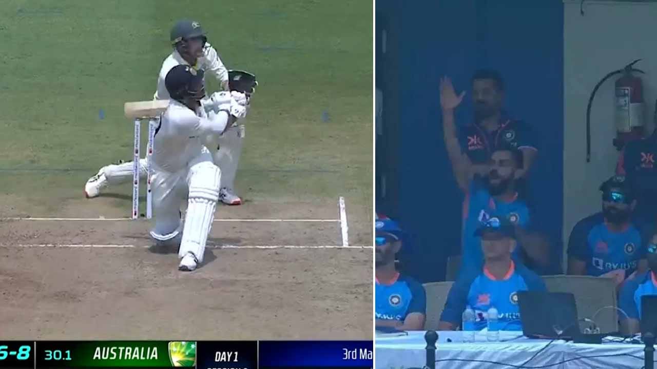 ನಥನ್ ಲಿಯಾನ್ ಮತ್ತು ಟಾಡ್ ಮರ್ಫಿ ಬೌಲಿಂಗ್ನಲ್ಲಿ ಸಿಕ್ಸರ್ ಸಿಡಿಸಿದ ಉಮೇಶ್ ಯಾದವ್ ಅವರು ವಿರಾಟ್ ಕೊಹ್ಲಿ ದಾಖಲೆಯನ್ನೂ ಸರಿಗಟ್ಟಿದರು. ಕೊಹ್ಲಿ 181 ಟೆಸ್ಟ್ ಇನಿಂಗ್ಸ್ಗಳಲ್ಲಿ ಒಟ್ಟು 24 ಸಿಕ್ಸ್ಗಳನ್ನು ಬಾರಿಸಿದ್ದಾರೆ. 64 ಇನಿಂಗ್ಸ್ ಮೂಲಕ ಉಮೇಶ್ ಕೂಡ 24 ಸಿಕ್ಸ್ ಬಾರಿಸಿ ಕೊಹ್ಲಿಯ ಸಾಧನೆಯನ್ನು ಸರಿಗಟ್ಟಿದ್ದಾರೆ. ಇತ್ತ ಉಮೇಶ್ ಸಿಕ್ಸ್ ಸಿಡಿಸಿ ಕೊಹ್ಲಿ ದಾಖಲೆಯನ್ನು ಸರಿಗಟ್ಟುತ್ತಿದ್ದಂತೆ ಅತ್ತ ಡ್ರೆಸ್ಸಿಂಗ್ ರೂಮ್ನಲ್ಲಿದ್ದ ವಿರಾಟ್ ಕೂತಲ್ಲಿಂದಲೇ ಜಿಗಿದು ವಿಶೇಷವಾಗಿ ಸಂಭ್ರಮ ಪಟ್ಟರು. ಇದರ ವಿಡಿಯೋ ಸಾಮಾಜಿಕ ಜಾಲತಾಣಗಳಲ್ಲಿ ಸಖತ್ ವೈರಲ್ ಆಗುತ್ತಿದೆ.