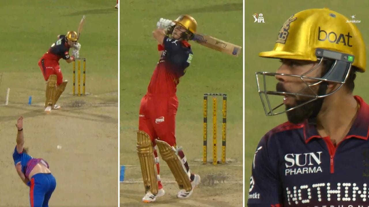 Jacob Bethell 104 Meter Six: ದೆಹಲಿ ಕ್ಯಾಪಿಟಲ್ಸ್ ಮತ್ತು ರಾಯಲ್ ಚಾಲೆಂಜರ್ಸ್ ಬೆಂಗಳೂರು ನಡುವಿನ ಪಂದ್ಯದಲ್ಲಿ, ಆರ್ಸಿಬಿಯ ಓಪನರ್ ಜಾಕೋಬ್ ಬೆಥೆಲ್ 104 ಮೀಟರ್ಗಳ ಲಾಂಗ್ ಸಿಕ್ಸ್ ಬಾರಿಸಿದರು. ಇದನ್ನು ಕಂಡು ಕೇವಲ ಸ್ಟೇಡಿಯಂನಲ್ಲಿದ್ದ ಫ್ಯಾನ್ಸ್ ಮಾತ್ರವಲ್ಲದೆ ಮತ್ತೊಂದು ತುದಿಯಲ್ಲಿದ್ದ ವಿರಾಟ್ ಕೊಹ್ಲಿ ಕೂಡ ಶಾಕ್ ಆದರು. ಇದರ ವಿಡಿಯೋ ಈಗ ಸಾಮಾಜಿಕ ಮಾಧ್ಯಮದಲ್ಲಿ ಸಖತ್ ವೈರಲ್ ಆಗುತ್ತಿದೆ.