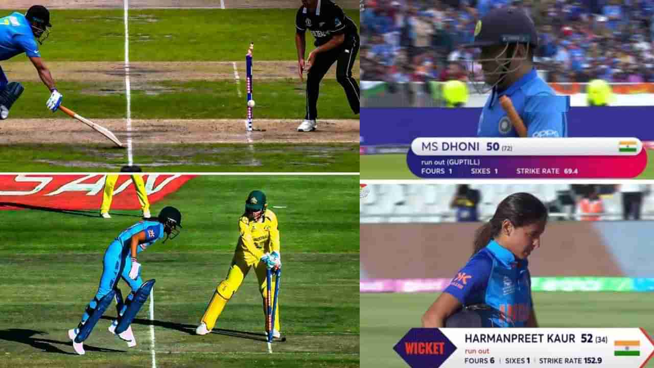 ಈ ಪಂದ್ಯದಲ್ಲಿ ಏಕಾಂಗಿ ಹೋರಾಟ ನಡೆಸಿದ ಧೋನಿ ತಂಡವನ್ನು ಗೆಲುವಿನ ಸಮೀಪಕ್ಕೆ ತಂದರು. ಈ ವೇಳೆ 50 ರನ್ ಗಳಿಸಿ ಬ್ಯಾಟಿಂಗ್ ಮಾಡುತ್ತಿದ್ದ ಧೋನಿ, ಡೀಪ್ನಿಂದ ಮಾರ್ಟಿನ್ ಗಪ್ಟಿಲ್ ಎಸೆದ ನೇರ ಎಸೆತದಲ್ಲಿ ರನೌಟ್ ಆದರು. ಸ್ವಲ್ಪದರಲ್ಲೇ ಧೋನಿ ರನೌಟ್ ಆಗಿದ್ದನ್ನು ನೋಡಿದ ತಕ್ಷಣ ಭಾರತೀಯ ಡ್ರೆಸ್ಸಿಂಗ್ ಸೇರಿದಂತೆ ಇಡೀ ದೇಶವೇ ಕಣ್ಣೀರಿಟ್ಟಿತ್ತು. ಸ್ವತಃ ಧೋನಿ ಕೂಡ ಕಣ್ಣಲ್ಲಿ ನೀರು ತುಂಬಿಕೊಂಡು ಪೆವಿಲಿಯನ್ಗೆ ಮರಳಿದರು. ಇದೀಗ ಧೋನಿ ರನೌಟ್ ಜೊತೆಗೆ ಹರ್ಮನ್ಪ್ರೀತ್ ಆದ ರನ್ ಔಟ್ ವಿಡಿಯೋ ಮತ್ತೊಮ್ಮೆ ಕೋಟ್ಯಂತರ ಭಾರತೀಯರ ಹೃದಯ ಒಡೆಯುವಂತೆ ಮಾಡಿದೆ.