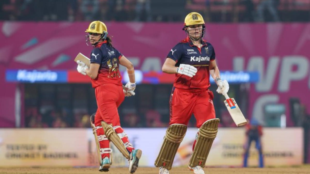 ಈ ಗುರಿ ಬೆನ್ನಟ್ಟಿದ ಆರ್ಸಿಬಿಗೆ ಮತ್ತೆ ಆರಂಭಿಕ ಆಘಾತ ಎದುರಾಯಿತು. ಮತ್ತೊಮ್ಮೆ ನಿರಾಸೆ ಮೂಡಿಸಿದ ಗ್ರೇಸ್ ಹ್ಯಾರಿಸ್ 1 ರನ್ಗೆ ವಿಕೆಟ್ ಒಪ್ಪಿಸಿದರು. ಆ ಬಳಿಕ ಜೊತೆಯಾದ ಸ್ಮೃತಿ ಮಂಧಾನ ಹಾಗೂ ಜಾರ್ಜಿಯಾ ವಾಲ್ ತಲಾ ಅರ್ಧಶತಕದ ಇನ್ನಿಂಗ್ಸ್ ಆಡುವುದರ ಜೊತೆಗೆ 2ನೇ ವಿಕೆಟ್ಗೆ 142 ರನ್ಗಳ ಜೊತೆಯಾಟವನ್ನಾಡಿ ತಂಡದ ಗೆಲುವನ್ನು ಖಚಿತಪಡಿಸಿದರು. ಆದಾಗ್ಯೂ ಸ್ಮೃತಿ ಮಂಧಾನ ಶತಕದಂಚಿನಲ್ಲಿ ಎಡವಿ ಕೇವಲ 4 ರನ್ಗಳಿಂದ ಶತಕ ವಂಚಿತರಾದರು.