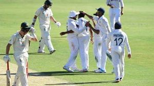 ಲಬುಶೇನ್ರನ್ನು ಔಟ್ ಮಾಡಿದ ನಟರಾಜನ್ರನ್ನು ಅಭಿನಂದಿಸುತ್ತಿರುವ ಭಾರತೀಯ ಆಟಗಾರರು