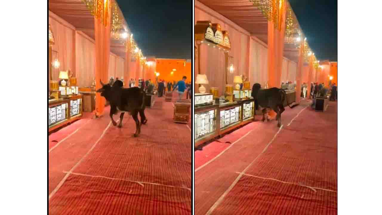 Viral Video : ಮದುವೆಮನೆಗೆ ಬೆಕ್ಕು, ನಾಯಿಯಂಥ ಸಾಕುಪ್ರಾಣಿಗಳು ನುಗ್ಗುವುದನ್ನು ನೋಡಿದ್ದೇವೆ. ಆದರೆ ಗೂಳೀ!? ಮದುವೆ ನಡೆಯುವ ಸ್ಥಳವನ್ನು ಅತ್ಯಂತ ವೈಭವಯುತವಾಗಿ ಅಲಂಕರಿಸಲಾಗಿದೆ. ಶಿಸ್ತಾಗಿ ಪಾನೀಯ, ಆಹಾರದ ಕೌಂಟರುಗಳನ್ನು ಜೋಡಿಸಲಾಗಿದೆ. ಅತಿಥಿಗಳ ಆಗಮನದಲ್ಲಿ ಎಲ್ಲರೂ ಇದ್ದಾರೆ. ಆದರೆ ಇದೆಲ್ಲಿಂದ ಬಂದಿತೋ ಗೂಳಿ? ಗೂಳಿ ಎಂದಮೇಲೆ ಆಮಂತ್ರಣ ಬೇಕೇ? ಹದಿನೈದು ಸೆಕೆಂಡುಗಳ ಈ ವಿಡಿಯೋ ಅನ್ನು ನೆಟ್ಟಿಗರು ಅವಾಕ್ಕಾಗಿ ನೋಡುತ್ತಿದ್ದಾರೆ. ಎಲ್ಲಿ ನುಗ್ಗಿ ಏನು ಹಾನಿ ಮಾಡುತ್ತದೆಯೋ ಎಂಬ ಆತಂಕ ಉಂಟಾಗದೇ ಇರದು.