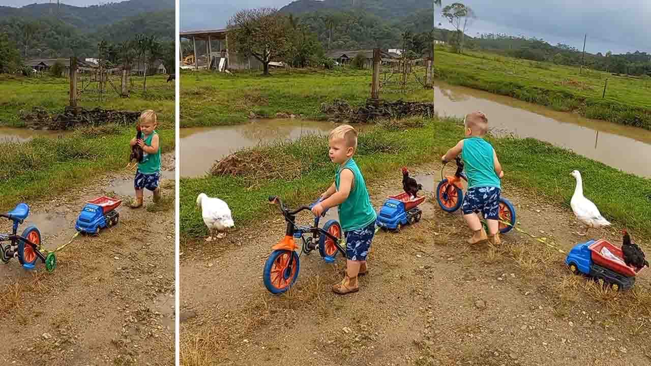Viral Video : ಅಪ್ಪ ಅಮ್ಮ ಮಗುವಿಗೆ ಎರೆದ ಪ್ರೀತಿ, ಕಾಳಜಿಯನ್ನೇ ತನ್ನ ಜೊತೆಗಿರುವವರಿಗೂ ಧಾರೆ ಎರೆಯುತ್ತದೆ ಮಗು. ಇಂಥವರಿಗೆ ಇಂಥದಕ್ಕೇ ಎಂದು ಗೆರೆ ಕೊರೆದುಕೊಂಡು ಬದುಕುವುದು ಮಗುವಿಗೆ ಗೊತ್ತಿಲ್ಲ. ಮನುಷ್ಯರು, ಪ್ರಾಣಿಗಳು, ಪಕ್ಷಿಗಳು ಎಲ್ಲವೂ ಎಲ್ಲರೂ ಒಂದೇ ಮಗುವಿನ ಚಿತ್ತದಲ್ಲಿ. ಇದೀಗ ವೈರಲ್ ಆಗಿರುವ ಈ ವಿಡಿಯೋ ನೋಡಿ. ಸೈಕಲ್ ತೆಗೆದುಕೊಂಡು ರಸ್ತೆಗಿಳಿದಿದೆ ಈ ಮಗು. ಅಲ್ಲಿ ಬಾತು ಮತ್ತು ಹುಂಜ ಕಂಡಿವೆ. ಆಟ ಮುಗಿಸಿ ವಾಪಸ್ ಹೋಗುವಾಗ ಹುಂಜಕ್ಕೆ ಡ್ರಾಪ್ ಕೊಡಬೇಕು ಎನ್ನಿಸಿದೆ ಮಗುವಿಗೆ.