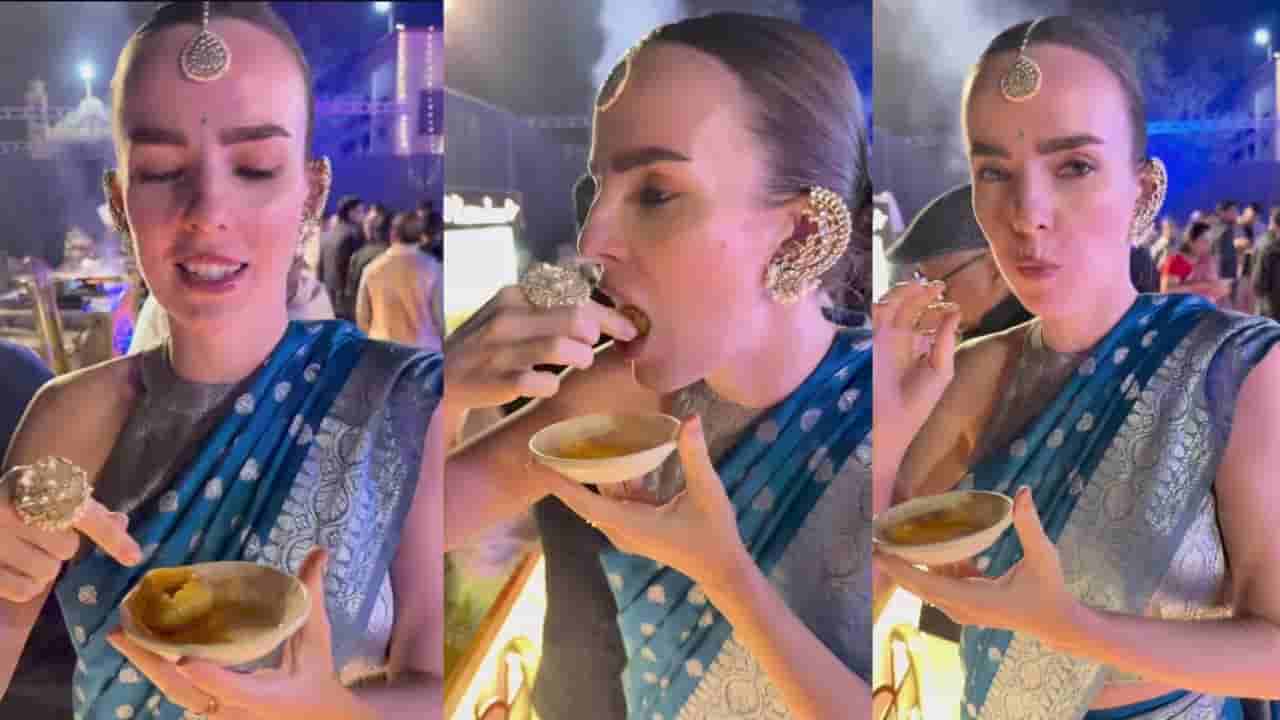 @vera__india ಹೆಸರಿನ ಇನ್ಸ್ಟಾಗ್ರಾಮ್ ಖಾತೆಯಲ್ಲಿ ಹಂಚಿಕೊಳ್ಳಲಾಗಿದೆ. ವಿದೇಶಿ ಮಹಿಳೆ ಮದುವೆ ಅಥವಾ ಇನ್ಯಾವುದೋ ಸಮಾರಂಭದಲ್ಲಿ ಭಾಗಿಯಾದಂತೆ ಕಾಣುತ್ತಿದೆ. ನೀಲಿ ಬಣ್ಣದ ಸೀರೆ ಉಟ್ಟಿದ್ದು, ಅದಕ್ಕೆ ಸರಿಹೊಂದುವ ಜ್ಯುವೆಲ್ಲರಿ ಧರಿಸಿರುವುದನ್ನು ಕಾಣಬಹುದು. ಕೈಯಲ್ಲಿ ತಟ್ಟೆಯನ್ನು ಹಿಡಿದುಕೊಂಡು ಇದೇನು ಎಂದು ವಿಡಿಯೋ ಮಾಡುತ್ತಿದ್ದ ವ್ಯಕ್ತಿಯ ಬಳಿ ಕೇಳುತ್ತಾನೆ. ಈ ವ್ಯಕ್ತಿ ಗೋಲ್ಗಪ್ಪಾ ಎಂದು ಹೇಳುವುದನ್ನು ಕಾಣಬಹುದು. ತದನಂತರದಲ್ಲಿ ಈ ವಿದೇಶಿ ಮಹಿಳೆ ಗೋಲ್ಗಪ್ಪಾ ಸವಿದು ನೃತ್ಯ ಮಾಡುವ ಮೂಲಕ ಮುದ್ದಾಗಿ ರಿಯಾಕ್ಷನ್ ನೀಡಿರುವುದನ್ನು ನೋಡಬಹುದು.