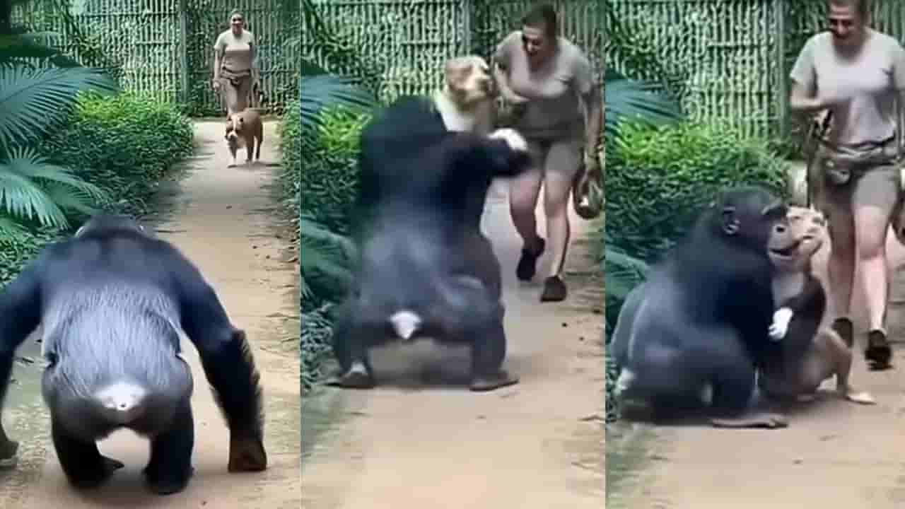 ಈ ಜಗತ್ತಿನಲ್ಲಿ ಎಲ್ಲ ಬಂಧ ಮೀರಿದ ಸಂಬಂಧವೇ ಈ ಸ್ನೇಹ (friendship). ಪ್ರಪಂಚದಲ್ಲಿ ಸ್ನೇಹಿತರಿಲ್ಲದ ವ್ಯಕ್ತಿಯಿರಲು ಸಾಧ್ಯವೇ ಇಲ್ಲ. ಈ ಸುಂದರವಾದ ಬಂಧಕ್ಕೆ ಬೆಲೆ ಕಟ್ಟಲು ಸಾಧ್ಯವಿಲ್ಲ. ಮೂಕ ಪ್ರಾಣಿಗಳ ನಡುವಿನ ಶುದ್ಧ ಸ್ನೇಹಕ್ಕೆ ಈ ವಿಡಿಯೋನೇ ಸಾಕ್ಷಿ. ತನ್ನ ಬೆಸ್ಟ್ ಫ್ರೆಂಡ್ ಶ್ವಾನವನ್ನು (dog) ಕಂಡೊಡನೆ ಗೊರಿಲ್ಲಾ ಕುಣಿದಾಡಿದ್ದು, ಓಡಿ ಹೋಗಿ ತಬ್ಬಿಕೊಂಡು ಮುದ್ದಾಡಿರುವ ವಿಡಿಯೋ ವೈರಲ್ ಆಗಿದೆ.