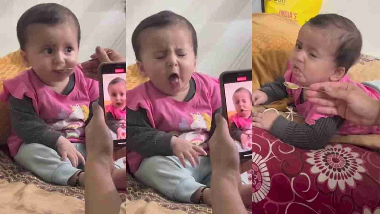 @imswatiprasher ಹೆಸರಿನ ಇನ್ಸ್ಟಾಗ್ರಾಮ್ ಖಾತೆಯಲ್ಲಿ ಈ ವಿಡಿಯೋವನ್ನು ಹಂಚಿಕೊಳ್ಳಲಾಗಿದೆ. ಈ ವಿಡಿಯೋದಲ್ಲಿ ಹಾಸಿಗೆಯಲ್ಲಿ ಆಟವಾಡುತ್ತಿದ್ದ ಮಗುವಿಗೆ ಪೋಷಕರು ಕಿವಿ ಹಣ್ಣಿನ ರಸವನ್ನು ಬಾಯಿಗೆ ಹಾಕಿದ್ದಾರೆ. ಕಿವಿ ಹಣ್ಣನ್ನು ಮೊದಲ ಬಾರಿಗೆ ಸವಿದ ಪುಟ್ಟ ಕಂದಮ್ಮ ಮುದ್ದಾದ ಪ್ರತಿಕ್ರಿಯೆಯನ್ನು ನೀಡಿದೆ.