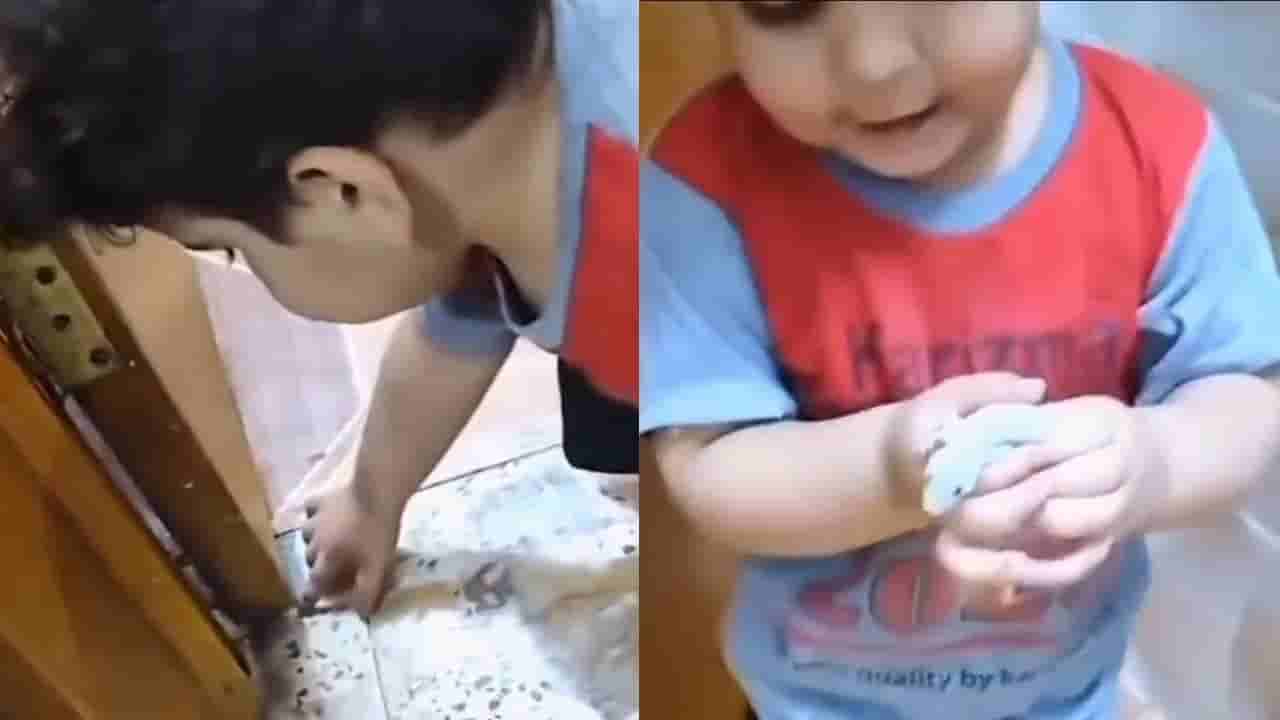 @mithirasmalaii ಹೆಸರಿನ ಎಕ್ಸ್ ಖಾತೆಯಲ್ಲಿ ಹಂಚಿಕೊಳ್ಳಲಾದ ಈ ವಿಡಿಯೋದಲ್ಲಿ ಪುಟ್ಟ ಹುಡುಗನು ಬಾಗಿಲ ಸಂದಿಯಲ್ಲಿರುವ ಹಲ್ಲಿಯನ್ನು ಹಿಡಿಯಲು ಪ್ರಯತ್ನಿಸುತ್ತಿರುವುದನ್ನು ಕಾಣಬಹುದು. ಈ ಪುಟಾಣಿಯೂ ಹಲ್ಲಿಯನ್ನು ಮೆಲ್ಲನೆ ಕೈಯಲ್ಲಿ ಹಿಡಿದು ಮುತ್ತು ನೀಡಿರುವುದನ್ನು ನೋಡಬಹುದು.