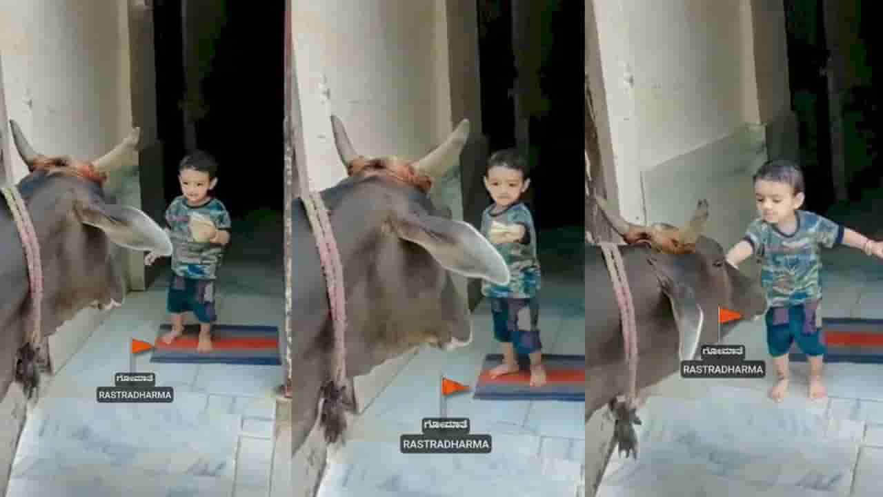 ಗೋಮಾತೆ ರಾಷ್ಟ್ರಧರ್ಮ (Gomathe Rastradharma) ಹೆಸರಿನ ಫೇಸ್ಬುಕ್ ಖಾತೆಯಲ್ಲಿ ವಿಡಿಯೋ ಹಂಚಿಕೊಳ್ಳಲಾಗಿದೆ. ಈ ವಿಡಿಯೋದಲ್ಲಿ ಪುಟಾಣಿಯೊಂದು ಮನೆಯ ಬಾಗಿಲಿನ ಮುಂದೆ ನಿಂತ ಗೋಮಾತೆ ಹಸಿವು ನೀಗಿಸಿದೆ. ಪುಟ್ಟ ಮಗುವು ಕೈಯಲ್ಲಿ ಹಿಡಿದುಕೊಂಡು ಮೆಲ್ಲನೆ ನಡೆದುಕೊಂಡು ಬಂದಿದೆ. ಆ ಚಪಾತಿ ಬಳಿಕ ಹಸುವಿಗೆ ತಿನ್ನಲು ಕೊಟ್ಟು ಹಣೆ ಮುಟ್ಟಿ ನಮಸ್ಕಾರ ಪಡೆದುಕೊಂಡಿರುವುದನ್ನು ಕಾಣಬಹುದು.