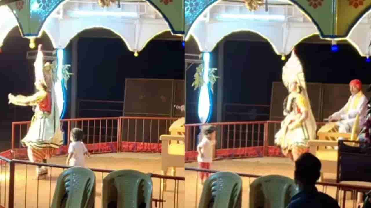 ಪುಟಾಣಿ ಮಕ್ಕಳೇ (little kids) ಹಾಗೆ ಹಾಡು ಕೇಳಿದ ತಕ್ಷಣ ಕುಣಿಯಲು ಶುರು ಮಾಡ್ತಾರೆ. ಸೋಶಿಯಲ್ ಮೀಡಿಯಾದಲ್ಲಿ ಈ ಪುಟಾಣಿಗಳ ಡ್ಯಾನ್ಸ್ ವಿಡಿಯೋಗಳು ವೈರಲ್ ಆಗುತ್ತಿರುತ್ತವೆ. ಇದೀಗ ರಂಗದಲ್ಲಿ ಯಕ್ಷಗಾನ ಕಲಾವಿದ ಕುಣಿಯುತ್ತಿದ್ದರೆ, ಯಕ್ಷಗಾನ (Yakshagana) ನೋಡಲು ಬಂದ ಪುಟಾಣಿಯೂ ಅವರ ಜತೆಯಲ್ಲಿ ಹೆಜ್ಜೆ ಹಾಕಿದೆ. ಈ ಮುದ್ದಾದ ವಿಡಿಯೋ ಸೋಶಿಯಲ್ ಮೀಡಿಯಾದಲ್ಲಿ ವೈರಲ್ ಆಗಿದ್ದು ನೆಟ್ಟಿಗರು ಫಿದಾ ಆಗಿದ್ದಾರೆ.