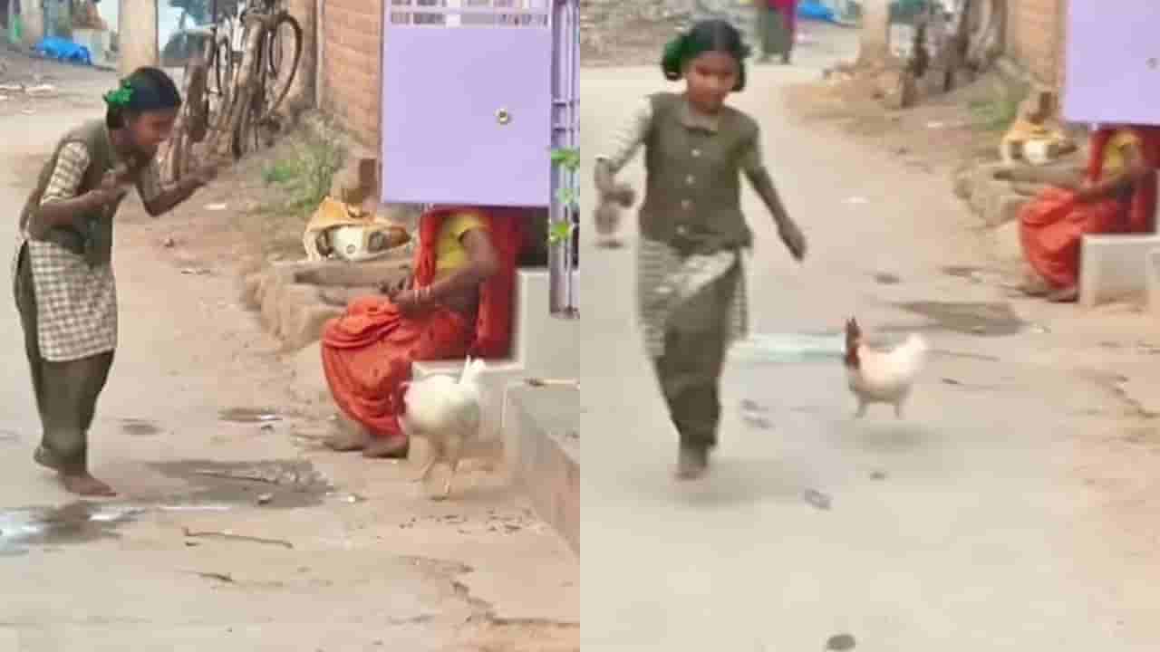 ಪುಟ್ಟ ಮಕ್ಕಳೇ (little kids) ಹಾಗೆ, ತುಂಟಾಟ ಮಾಡುವುದರಲ್ಲಿ ಎತ್ತಿದ ಕೈ. ಏನೋ ಮಾಡಲು ಹೋಗಿ ಎಡವಟ್ಟು ಮಾಡಿಕೊಳ್ಳುವುದೇ ಹೆಚ್ಚು. ಈ ಪುಟ್ಟ ಹುಡುಗಿಯದ್ದು (little girl) ಅದೇ ಕಥೆ. ಹುಂಜದ ಮುಂದೆ ಕುಣಿದಾಡುತ್ತಿದ್ದಂತೆ ಪುಟ್ಟ ಹುಡುಗಿಯನ್ನು ಅಟ್ಟಾಡಿಸಿಕೊಂಡು ಹೋದ ವಿಡಿಯೋ ಸದ್ಯ ವೈರಲ್ ಆಗಿದೆ. ಈ ವಿಡಿಯೋ ನೆಟ್ಟಿಗರ ಮೊಗದಲ್ಲಿ ನಗು ತರಿಸಿದೆ.