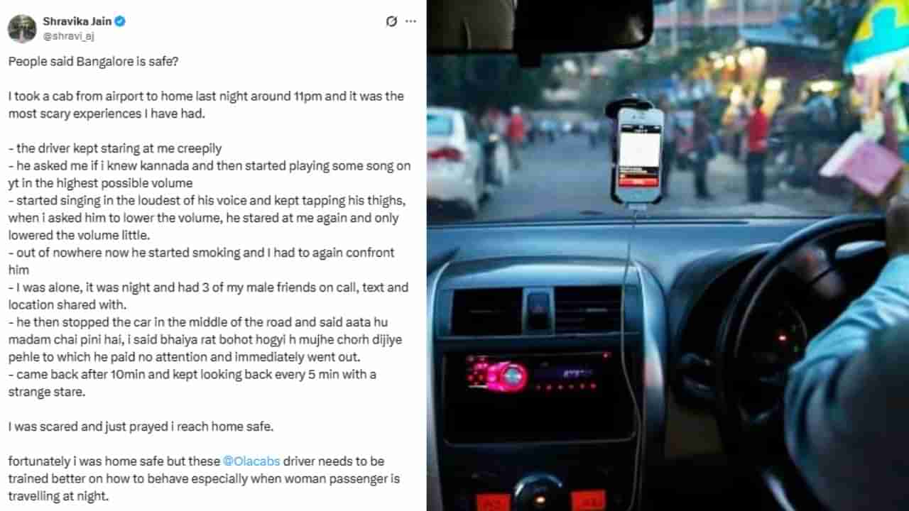 Shravika jain ಹೆಸರಿನ ಎಕ್ಸ್ ಖಾತೆಯಲ್ಲಿ ಪೋಸ್ಟ್ ಮಾಡಿದ್ದು, ಬೆಂಗಳೂರಿನ ವಿಮಾನ ನಿಲ್ದಾಣದಿಂದ ರಾತ್ರಿ 11 ಗಂಟೆಗೆ ಪ್ರಯಾಣಿಸುತ್ತಿದ್ದ ವೇಳೆಯಲ್ಲಿ ತಮಗಾದ ಅನುಭವವನ್ನು ಸವಿವರವಾಗಿ ಹೇಳಿದ್ದಾರೆ. ಹೌದು ತಮ್ಮ ಈ ಪೋಸ್ಟ್ ನಲ್ಲಿ ‘ಈ ಬೆಂಗಳೂರು ಸುರಕ್ಷಿತ ಎಂದು ಜನರು ಹೇಳುತ್ತಾರೆ? ನಿನ್ನೆ ರಾತ್ರಿ ವಿಮಾನ ನಿಲ್ದಾಣದಿಂದ ಕ್ಯಾಬ್ನಲ್ಲಿ ಬಂದದ್ದು ನನ್ನ ಜೀವನದ ಅತ್ಯಂತ ಭಯಾನಕ ಅನುಭವಗಳಲ್ಲಿ ಒಂದು. ಪ್ರಯಾಣ ಪ್ರಾರಂಭವಾದ ಕೂಡಲೇ ಚಾಲಕ ನನ್ನನ್ನು ಕೆಟ್ಟ ದೃಷ್ಟಿಯಿಂದ ನೋಡಲು ಪ್ರಾರಂಭಿಸಿದ್ದಾನೆ.
