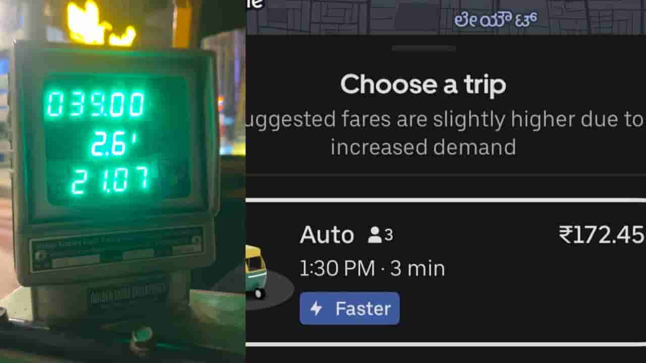 ಬೆಂಗಳೂರು ಸೇರಿದಂತೆ ದೊಡ್ಡ ದೊಡ್ಡ ನಗರಗಳಲ್ಲಿ ಆಟೋ, ಟ್ಯಾಕ್ಸಿ ಬುಕ್ ಮಾಡಲು ಆ್ಯಪ್ಗಳನ್ನು (apps) ಅವಲಂಬಿಸಿದವರೇ ಹೆಚ್ಚು. ಆದರೆ ಮಾಯಾನಗರಿ ಬೆಂಗಳೂರಿನಲ್ಲಿ (Bengaluru) ಆ್ಯಪ್ ಮೂಲಕ ಆಟೋರಿಕ್ಷಾಗಳನ್ನು ಬುಕ್ ಮಾಡುವ ಪ್ರಯಾಣಿಕರಿಂದ ಆಟೋ ಚಾಲಕರು ಟಿಪ್ (tip) ಸೇರಿಸಿ ಹೆಚ್ಚುವರಿ ಹಣವನ್ನು ಚಾರ್ಜ್ ಮಾಡುತ್ತಿರುವ ಆರೋಪವು ಕೇಳಿ ಬರುತ್ತಲೇ ಇದೆ. ಆದರೆ ಇದೀಗ ಬೆಂಗಳೂರಿನ ಮಹಿಳೆಯೊಬ್ಬರು ಆಟೋರಿಕ್ಷಾ ಮೀಟರ್ ಮತ್ತು ಆನ್ಲೈನ್ ಬುಕಿಂಗ್ ಅಪ್ಲಿಕೇಶನ್ನಲ್ಲಿ ತೋರಿಸಿರುವ ದರಗಳಲ್ಲಿನ ಭಾರಿ ವ್ಯತ್ಯಾಸದ ಬಗ್ಗೆ ಪೋಸ್ಟ್ ಮಾಡಿದ್ದಾರೆ. ಆಟೋರಿಕ್ಷಾ ಮೀಟರ್ 2.6 ಕಿ.ಮೀ.ಗೆ 39 ರೂ. ತೋರಿಸಿದರೆ, ಉಬರ್ ಅಪ್ಲಿಕೇಶನ್ನಲ್ಲಿ ಅದು 172 ರೂ. ಇದೆ ಎನ್ನುವ ಮೂಲಕ ಅಪ್ಲಿಕೇಶನ್ ಮೂಲಕ ಪ್ರಯಾಣಿಕರಿಂದ ದುಬಾರಿ ಹಣವನ್ನು ವಸೂಲಿ ಮಾಡಲಾಗುತ್ತಿದೆ ಎನ್ನುವ ವಾಸ್ತವ ಸ್ಥಿತಿಯನ್ನು ತೆರೆದಿಟ್ಟಿದ್ದಾರೆ. ಈ ಪೋಸ್ಟ್ ಸೋಶಿಯಲ್ ಮೀಡಿಯಾದಲ್ಲಿ ವೈರಲ್ ಆಗುತ್ತಿದ್ದಂತೆ ಬಳಕೆದಾರರು ಶಾಕ್ ಆಗಿದ್ದಾರೆ.