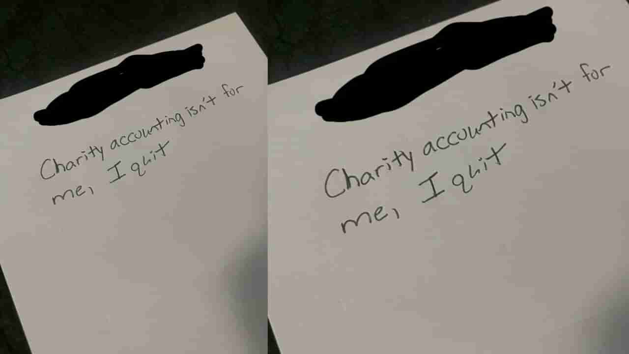 ರೆಡ್ಡಿಟ್ ಬಳಕೆದಾರರೊಬ್ಬರು recruiting hell ಹೆಸರಿನ ತಮ್ಮ ಸೋಶಿಯಲ್ ಮೀಡಿಯಾದಲ್ಲಿ ತಮ್ಮ ಜೊತೆಗೆ ಮಾಡುವ ವ್ಯಕ್ತಿಯೂ ನೀಡಿದ ರಾಜೀನಾಮೆ ಪತ್ರದ ಫೋಟೋವನ್ನು ಹಂಚಿಕೊಂಡಿದ್ದಾರೆ. ಈ ಫೋಟೋದೊಂದಿಗೆ ನನ್ನ ಸಹೋದ್ಯೋಗಿಯೊಬ್ಬರು ಇದ್ದಕ್ಕಿಂತ ಕೆಲಸಕ್ಕೆ ಬರುವುದನ್ನು ನಿಲ್ಲಿಸಿದಾಗ ಅವರ ಟೇಬಲ್ ಗಮನಿಸಿದಾಗ ಈ ರಾಜೀನಾಮೆ ಪತ್ರವು ಸಿಕ್ಕಿತು ಎಂದಿದ್ದಾರೆ. ಈ ಪತ್ರದಲ್ಲಿ ಲೆಕ್ಕಪತ್ರ ನಿರ್ವಹಣೆ ನನ್ನಿಂದ ಅಸಾಧ್ಯ. ನಾನು ರಾಜೀನಾಮೆ ನೀಡುತ್ತೇನೆ ಎಂದು ಬರೆದಿರುವುದನ್ನು ನೋಡಬಹುದು. ಇದರಲ್ಲಿ ಯಾವುದೇ ವಿವರಣೆ ನೀಡದೇ ಕಂಪೆನಿಗೆ ಧನ್ಯವಾದ ತಿಳಿಸದೇನೇ ವಿಭಿನ್ನವಾಗಿ ರಾಜೀನಾಮೆ ನೀಡಲಾಗಿದೆ.