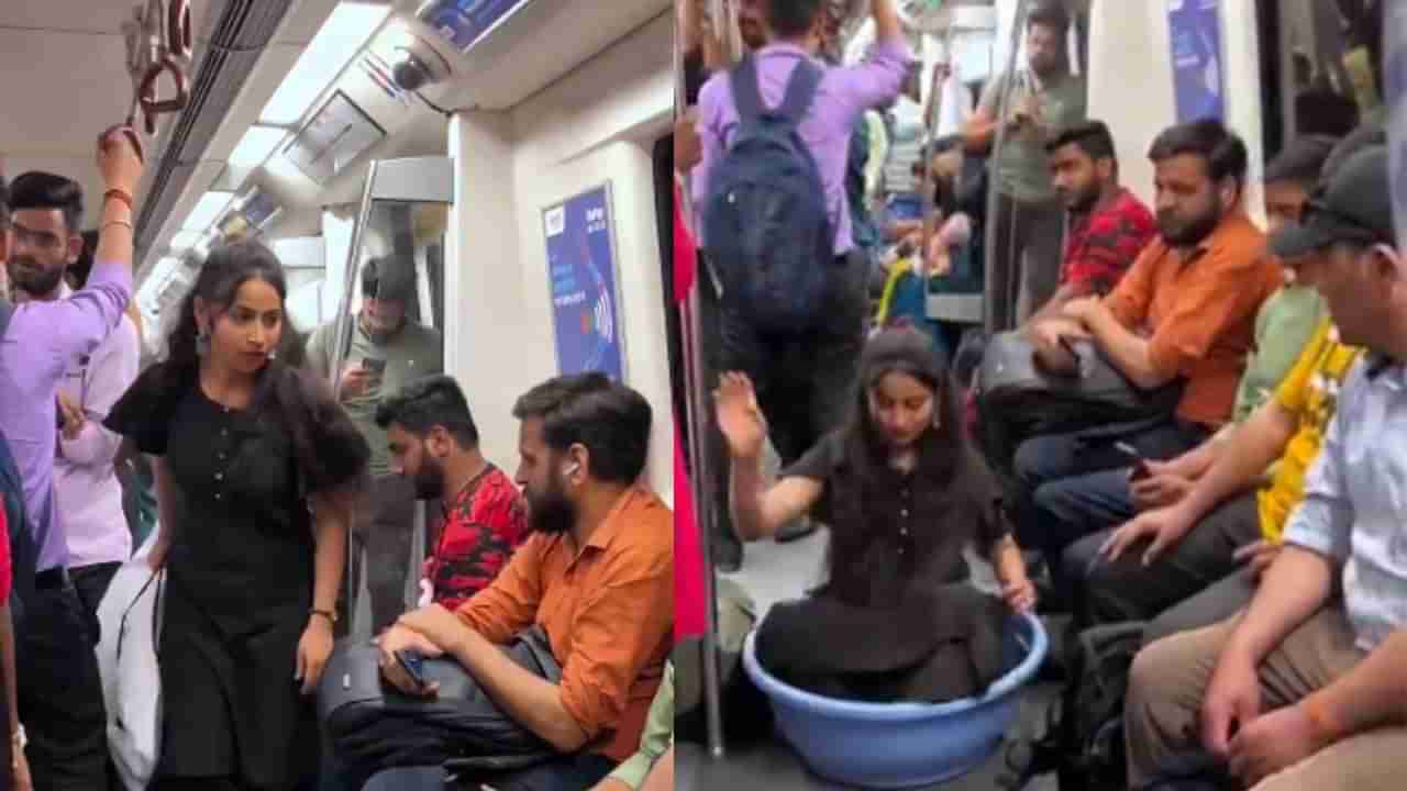 ಈ ವಿಡಿಯೋವನ್ನು @Rawat_1199 ಹೆಸರಿನ ಖಾತೆಯಲ್ಲಿ ಶೇರ್ ಮಾಡಿಕೊಳ್ಳಲಾಗಿದೆ. ಈ ವಿಡಿಯೋದಲ್ಲಿ ಕಪ್ಪು ಬಣ್ಣದ ಉಡುಪು ಧರಿಸಿರುವ ಯುವತಿಯೊಬ್ಬಳು ಕೈಯಲ್ಲೊಂದು ಬಿಳಿ ಬಣ್ಣದ ಚೀಲ ಮೆಟ್ರೋವನ್ನು ಪ್ರವೇಶಿಸುವುದನ್ನು ಕಾಣಬಹುದು. ಯುವತಿ ಕೈಯಲ್ಲಿ ಬಿಳಿ ಚೀಲವನ್ನು ಹಿಡಿದಿದ್ದು, ಅದರಲ್ಲಿ ಒಂದು ಟಬ್ ಇಟ್ಟುಕೊಂಡಿದ್ದಾರೆ. ಮೆಟ್ರೋ ಒಳಗೆ ಬಂದ ಯುವತಿ ತನ್ನ ಚೀಲದಿಂದ ಒಂದು ಟಬ್ ತೆಗೆದು ಅದರ ಮೇಲೆ ಹತ್ತಿ ಕುಳಿತುಕೊಳ್ಳುವುದನ್ನು ನೋಡಬಹುದು. ಟಬ್ ಮೇಲೆ ಕುಳಿತ ಯುವತಿಯನ್ನು ನೋಡಿ ಸುತ್ತಲಿನ ಜನರು ನೋಡಿ ನಗಲು ಪ್ರಾರಂಭಿಸುತ್ತಾರೆ.