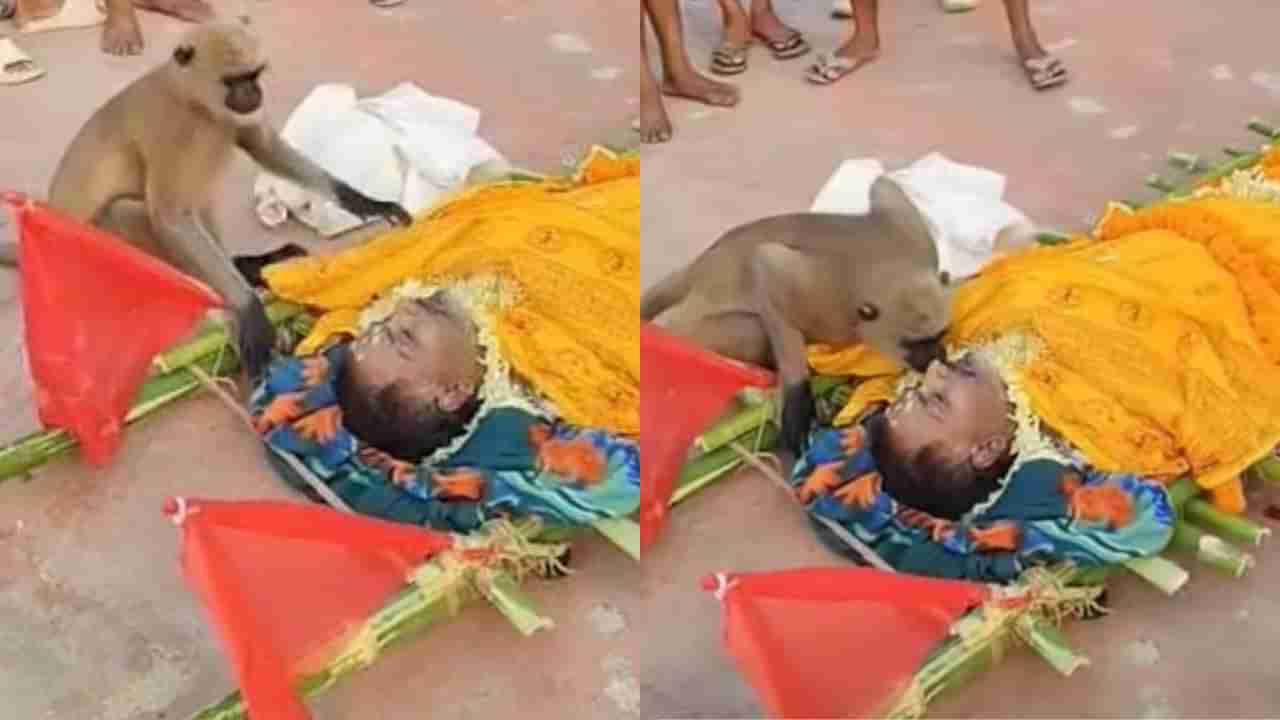 ದಿಯೋಘರ್, ಜೂನ್ 10: ನಾವೆಲ್ಲರೂ ಈ ಪ್ರಾಣಿ (animal) ಗಳಿಗೆ ಭಾವನೆಗಳಿಲ್ಲ ಎಂದುಕೊಳ್ಳುತ್ತೇವೆ. ಆದರೆ ಅವುಗಳಿಗೂ ತಾವು ತಮ್ಮವರು ಭಾವನೆ ಇದ್ದೆ ಇರುತ್ತದೆ. ಹೌದು, ಈ ಮೂಕ ಪ್ರಾಣಿಗಳ ಮೇಲೆ ಒಮ್ಮೆ ಕಾಳಜಿಯುತ ಪ್ರೀತಿ ಭಾವನೆ ತೋರಿದರೆ ಸಾಕು, ಅದು ಯಾವತ್ತೂ ನಿಮ್ಮನ್ನು ಮರೆಯುವುದಿಲ್ಲ. ಇದಕ್ಕೆ ಈ ವಿಡಿಯೋವೊಂದು ಸಾಕ್ಷಿಯಾಗಿದೆ. ತನಗೆ ಆಹಾರ ನೀಡುತ್ತಿದ್ದ ವ್ಯಕ್ತಿಯೂ ಮರಣ ಹೊಂದಿದ್ದು, ಆತನ ಮೃತದ ದೇಹದ ಮುಂದೆ ಕುಳಿತು ಕಣ್ಣೀರ ವಿದಾಯ ಹೇಳಿದ ಕೋತಿ (monkey) ಯ ಹೃದಯ ಸ್ಪರ್ಶಿ ವಿಡಿಯೋವೊಂದು ಸೋಶಿಯಲ್ ಮೀಡಿಯಾದಲ್ಲಿ ವೈರಲ್ ಆಗುತ್ತಿದೆ. ಈ ಘಟನೆಯು ದಿಯೋಘರ್ (Diyoghar) ಎಂಬಲ್ಲಿ ನಡೆದಿದೆ ಎನ್ನಲಾಗಿದೆ.