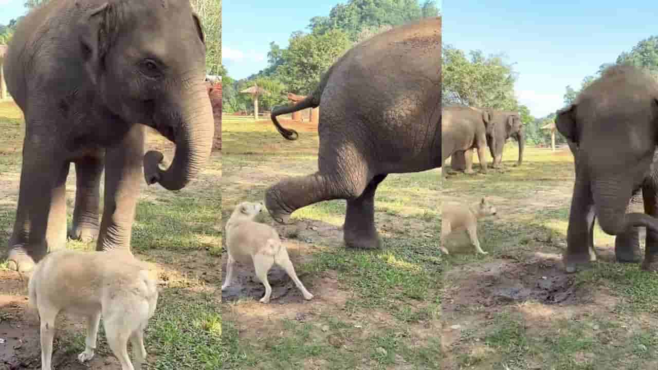 ಆನೆಗಳು (Elephants) ಮಾಡುವ ಚೇಷ್ಟೆಗಳು, ತುಂಟಾಟಗಳು ನೋಡುವುದೇ ಖುಷಿ. ಆನೆಗಳ ತುಂಟಾಟದ ವಿಡಿಯೋಗಳು ಸಾಮಾಜಿಕ ಜಾಲತಾಣದಲ್ಲಿ ಆಗಾಗ್ಗೆ ವೈರಲ್ ಆಗುತ್ತಿರುತ್ತವೆ. ಆದರೆ ಈ ಆನೆಗಳಿಗೆ ಕೋಪಬಂದರೆ ಅತೀರೇಕವಾಗಿ ವರ್ತಿಸುತ್ತವೆ. ಸುಖಾ ಸುಮ್ಮನೆ ತನ್ನೊಂದಿಗೆ ಕಿರಿಕ್ ಮಾಡಲು ಬರುವ ಯಾರನ್ನು ಕೂಡ ಸುಮ್ಮನೆ ಬಿಡಲ್ಲ. ಇದೀಗ ವೈರಲ್ ಆಗಿರುವ ವಿಡಿಯೋದಲ್ಲಿ ತನಗೆ ಬೊಗಳಿದ ಶ್ವಾನವನ್ನು ಆನೆಯು ಒದ್ದು ಓಡಿಸಿದೆ. ಈ ವಿಡಿಯೋ ಸದ್ಯ ಸೋಶಿಯಲ್ ಮೀಡಿಯಾದಲ್ಲಿ ಸಖತ್ ವೈರಲ್ ಆಗಿದೆ.