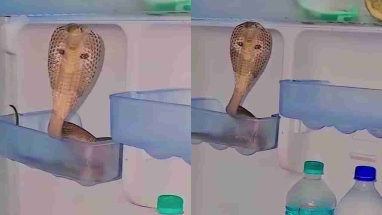 ಹಾವು (snakes) ಗಳೆಂದರೆ ಎಲ್ಲರಿಗೂ ಭಯ, ಎಷ್ಟೇ ಧೈರ್ಯವಂತರಾಗಿದ್ದರೂ ಹಾವನ್ನು ಕಂಡೊಡನೆ ಒಂದು ಮೈಲಿ ದೂರ ಓಡಿ ಬಿಡುತ್ತಾರೆ. ಆದರೆ ಇತ್ತೀಚೆಗಿನ ದಿನಗಳಲ್ಲಿ ನಗರ ಪ್ರದೇಶ ಹಾಗೂ ಜನವಸತಿ ಪ್ರದೇಶಗಳಲ್ಲಿ ಕಾಣಿಸಿಕೊಳ್ಳುವುದು ಹೆಚ್ಚಾಗಿದೆ. ಬೇಸಿಗೆ (summer) ಬಂದರಂತೂ ವಿಷಕಾರಿ ಹಾವುಗಳು ಮನೆಯೊಳಗೂ ಕಾಣಸಿಗುತ್ತದೆ. ಹಾವುಗಳು ಮನೆಯ ಮೂಲೆಯಲ್ಲಿ ಅವಿತುಕೊಂಡಿರುವ ವಿಡಿಯೋಗಳು ಸೋಶಿಯಲ್ ಮೀಡಿಯಾ ದಲ್ಲಿ ವೈರಲ್ ಆಗುವುದಿದೆ. ಇದೀಗ ನಾಗರಹಾವೊಂದು ಫ್ರಿಡ್ಜ್ (fridge) ಒಳಗೆ ಹೆಡೆಯೆತ್ತಿ ಕುಳಿತಿದ್ದು, ಈ ವಿಡಿಯೋವೊಂದು ಸೋಶಿಯಲ್ ಮೀಡಿಯಾದಲ್ಲಿ ವೈರಲ್ ಆಗುತ್ತಿದ್ದಂತೆ ಹೃದಯ ಗಟ್ಟಿ ಮಾಡಿಕೊಂಡು ಈ ವಿಡಿಯೋ ನೋಡಿದ್ದಾರೆ.