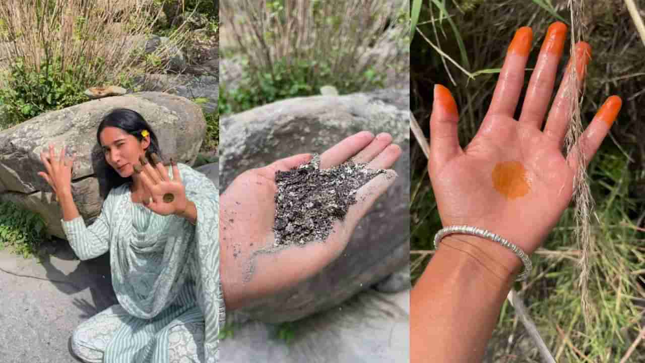 ಮೆಹಂದಿಯನ್ನು ಗೋರಂಟಿ ಎಲೆಗಳಿಂದ ತಯಾರು ಮಾಡ್ತಾರೆ ಅನ್ನೋ ವಿಚಾರ ಬಹುತೇಕ ನಮಗೆಲ್ಲರಿಗೂ ಗೊತ್ತೇ ಇದೆ. ಹೀಗಿರುವಾಗ ಇಲ್ಲೊಬ್ಬಳು ಹಿಮಾಚಲ ಪ್ರದೇಶದ ಯುವತಿ ಕಲ್ಲಿನಿಂದ ನ್ಯಾಚುರಲ್ ಮೆಹಂದಿ ತೆಗೆಯುವುದು ಹೇಗೆಂಬುದನ್ನು ಹೇಳಿ ಕೊಟ್ಟಿದ್ದಾಳೆ. ಆಕೆ ಬಂಡೆ ಕಲ್ಲಿನಲ್ಲಿ ಅಂಟಿರುವಂತಹ ಪಾಚಿಯಂತಹ ವಸ್ತುವನ್ನು ತೆಗೆದು ಅದಕ್ಕೆ ಸ್ವಲ್ಪ ನೀರು ಹಾಕಿ ಚೆನ್ನಾಗಿ ಅರೆದು ಮೆಹಂದಿ ರೆಡಿ ಮಾಡಿ ಅದನ್ನು ಕೈಗೆ ಹಚ್ಚಿದ್ದಾಳೆ.