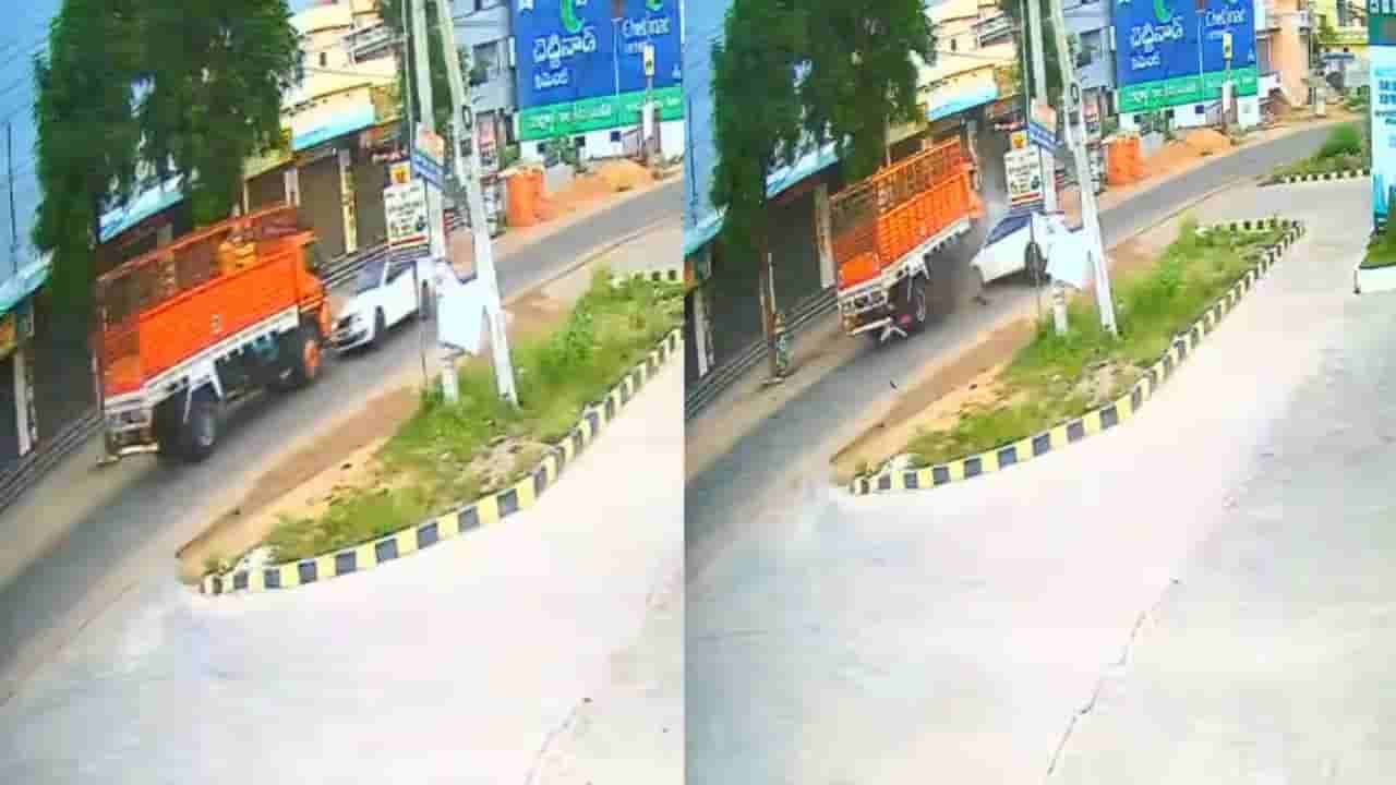 ಹೈದರಾಬಾದ್, ಮೇ 21 : ನಿಧಾನವೇ ಪ್ರಧಾನ, ಅತಿ ವೇಗದಲ್ಲಿ ವಾಹನಗಳನ್ನು ಚಲಾಯಿಸಬೇಡಿ ಎಂದು ಎಷ್ಟೇ ಹೇಳಿದ್ರೂ ಕೂಡ ಹೆಚ್ಚಿನವರು ಈ ಸಂಚಾರ ನಿಯಮ (traffic rules) ಗಳನ್ನು ಗಾಳಿಗೆ ತೂರಿ ವೇಗವಾಗಿ ವಾಹನ ಚಲಾಯಿಸುತ್ತಾರೆ. ಅತೀ ವೇಗದಿಂದ ವಾಹನಗಳನ್ನು ಓಡಿಸಿದ ಪರಿಣಾಮವಾಗಿ ಅದೆಷ್ಟೋ ರಣ ಭೀಕರ ಅಪಘಾತ (accident) ಗಳು ಸಂಭವಿಸಿವೆ. ಇಂತಹ ಸಾಕಷ್ಟು ಅಪಘಾತಗಳ ಬಗ್ಗೆ ದಿನನಿತ್ಯ ಸುದ್ದಿಗಳನ್ನು ಕೇಳುತ್ತೀರಿ. ಆದರೆ ಇದೀಗ ಹೈದರಾಬಾದ್ (Hyderabad) ನಗರ ವ್ಯಾಪ್ತಿಯ ಹಯಾತ್ನಗರ ಕಂಟ್ಲೂರಿ (Hayatnagar Kantloor) ನಲ್ಲಿ ಭಯಾನಕ ಅಪಘಾತವೊಂದು ಸಂಭವಿಸಿದೆ. ಅತಿ ವೇಗವಾಗಿ ಬಂದ ಕಾರೊಂದು, ಎದುರಿಗೆ ಬರುತ್ತಿದ್ದ ಲಾರಿಗೆ ಡಿಕ್ಕಿ ಹೊಡೆದಿದೆ. ಈ ಅಪಘಾತದ ಭಯಾನಕ ದೃಶ್ಯವು ಸಿಸಿಟಿವಿಯಲ್ಲಿ ಸೆರೆಯಾಗಿದೆ.