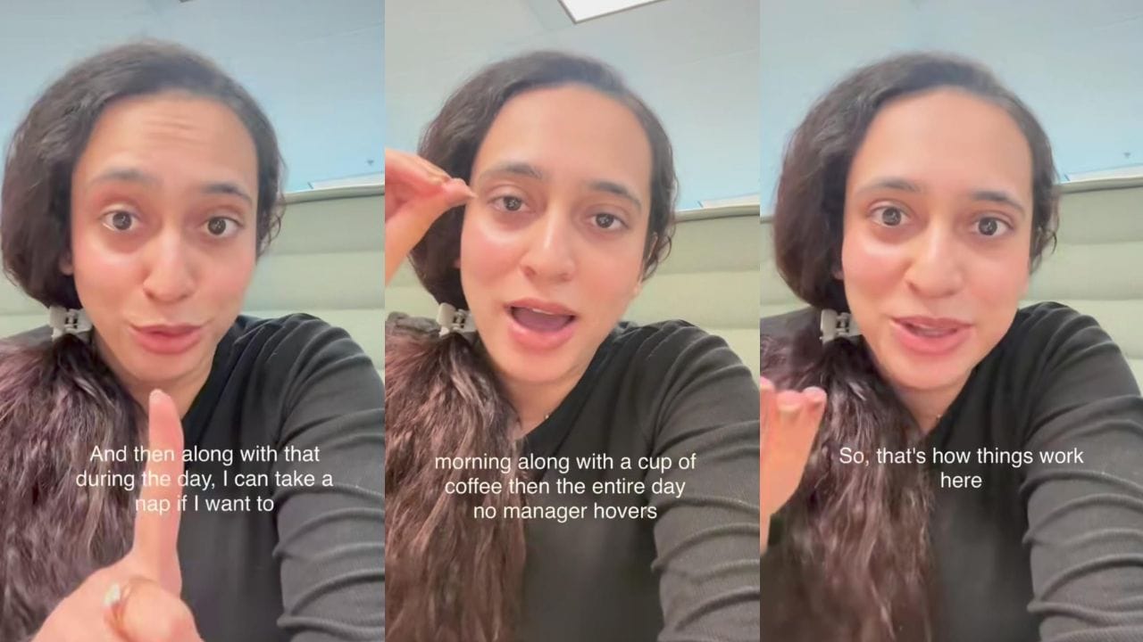 @unfiltered.anshikaa ಹೆಸರಿನ ಇನ್ಸ್ಟಾಗ್ರಾಮ್ ಖಾತೆಯಲ್ಲಿ ಹಂಚಿಕೊಳ್ಳಲಾಗಿದೆ. ಅನ್ಶಿಕಾರವರು ನಂಬಿಕೆ ಆಧಾರಿತ ಕಚೇರಿ ವಾತಾವರಣ ಇಲ್ಲಿದೆ. ಆದರೆ, ತಾನು ಭಾರತದಲ್ಲಿದ್ದಾಗ ಕಾರ್ಪೊರೇಟ್ ಕೆಲಸ ಮಾಡಲು ಇಷ್ಟಪಡುತ್ತಿರಲಿಲ್ಲ. ಕೆನಡಾಕ್ಕೆ ತೆರಳಿದ ನಂತರ ತನ್ನ ಅಭಿಪ್ರಾಯ ಬದಲಾಯಿತು. ಎಲ್ಲರೂ ಬೆಳಿಗ್ಗೆ 9 ಗಂಟೆಗೆ ಕಚೇರಿಗೆ ಬರುತ್ತಾರೆ. ನಾವೆಲ್ಲರೂ ಮಾಡುವ ಮೊದಲ ಕೆಲಸವೆಂದರೆ ಒಂದು ಕಪ್ ಕಾಫಿ ಕುಡಿಯುವುದು. ಸಮಯಕ್ಕೆ ಸರಿಯಾಗಿ ಪಂಚ್ ಮಾಡುವುದಿಲ್ಲ. ಆದ್ದರಿಂದ ನೀವು 10 ನಿಮಿಷ, 15 ನಿಮಿಷ ತಡವಾದರೂ, ಯಾರೂ ನಿಮ್ಮನ್ನು ಪ್ರಶ್ನಿಸುವುದಿಲ್ಲ. ತಡವಾದರೆ ನೆಪಗಳನ್ನು ನೀಡಬೇಕಾಗಿಲ್ಲ ಎಂದು ಹೇಳಿದ್ದಾರೆ.
