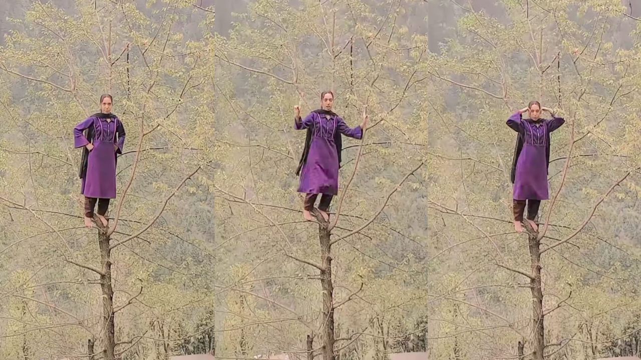 ಇತ್ತೀಚಿನ ದಿನಗಳಲ್ಲಿ ಎಲ್ಲೆಂದರಲ್ಲಿ ರೀಲ್ಸ್ (reels) ಮಾಡೋದು ಕಾಮನ್ ಆಗಿ ಬಿಟ್ಟಿದೆ. ಲೈಕ್ಸ್ ಹಾಗೂ ವೀವ್ಸ್ ಗಾಗಿ ಈಗಿನ ಯುವ ಸಮುದಾಯವು ಏನು ಬೇಕಾದರೂ ಸಿದ್ಧವಿದ್ದಾರೆ. ಈ ರೀಲ್ಸ್ ಹೆಸರಲ್ಲಿ ಯುವ ಸಮುದಾಯ ಮಾಡ್ತಿರೋ ಹುಚ್ಚಾಟಗಳಿಗೆ ಕೊನೆಯೇ ಇಲ್ಲ. ಕೆಲವರಂತೂ ಹೆಚ್ಚೆಚ್ಚು ಲೈಕ್ಸ್ ಹಾಗೂ ವೀವ್ಸ್ ಗಿಟ್ಟಿಸಿಕೊಳ್ಳಲು ತಮ್ಮ ಪ್ರಾಣವನ್ನೇ ಪಣಕಿಡುವುದನ್ನು ಕಾಣಬಹುದು. ಸದ್ಯಕ್ಕೆ ವೈರಲ್ ಆಗಿರುವ ವಿಡಿಯೋದಲ್ಲಿ ಕಾಶ್ಮೀರಿ ಮಹಿಳೆ (kashmiri women) ಯೊಬ್ಬರು ಮರದ ತುತ್ತ ತುದಿಯಲ್ಲಿ ನಿಂತು ಬ್ಯಾಲೆನ್ಸ್ ಮಾಡಿಕೊಂಡು ಸ್ಟೆಪ್ ಹಾಕಿದ್ದು, ಇದನ್ನು ನೋಡಿದ ನೆಟ್ಟಿಗರು ಬಾಯಿಯ ಮೇಲೆ ಬೆರಳಿಟ್ಟುಕೊಂಡಿದ್ದಾರೆ.