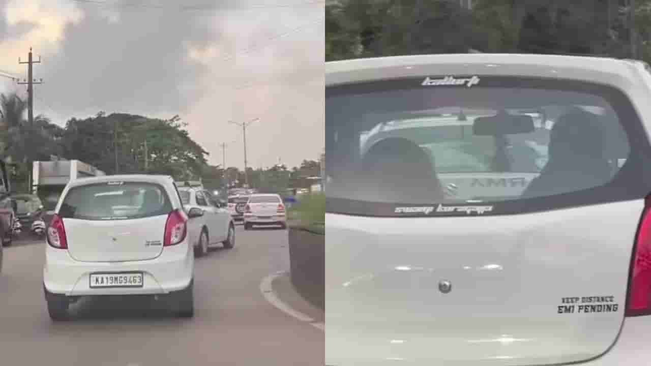 ಇನ್ ಕ್ರಿಡಿಬಲ್ ಮಂಗಳೂರು (incrediblemangloree) ಹೆಸರಿನ ಇನ್ಸ್ಟಾಗ್ರಾಮ್ ಖಾತೆಯಲ್ಲಿ ಈ ವಿಡಿಯೋವನ್ನು ಹಂಚಿಕೊಳ್ಳಲಾಗಿದೆ. ಹಿಂಬದಿ ವಾಹನ ಸವಾರರು ಮಾರುತಿ ಸುಜುಕಿ ಆಲ್ಟೋ ಕಾರಿನ ಹಿಂಭಾಗದಲ್ಲಿ ಬರೆಯಲಾದ ಸಾಲುಗಳನ್ನು ತಮ್ಮ ಮೊಬೈಲ್ ಕ್ಯಾಮೆರಾದಲ್ಲಿ ಸೆರೆ ಹಿಡಿದಿದ್ದಾರೆ. ಈ ಕಾರಿನ ಹಿಂಭಾಗದಲ್ಲಿ ಅಂತರ ಕಾಯ್ದುಕೊಳ್ಳಿ…ಇಎಂಐ ಬಾಕಿ ಇದೆ ಎಂದು ಬರೆದಿರುವುದನ್ನು ಕಾಣಬಹುದು.