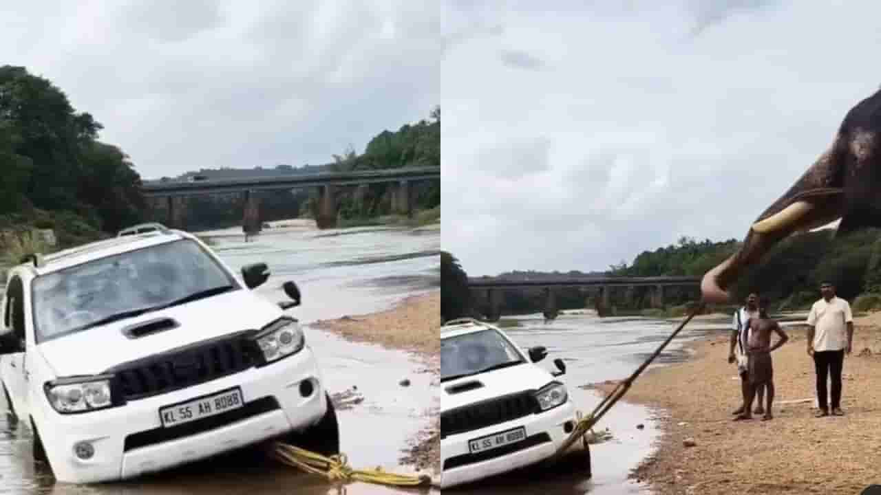 ಕೇರಳ, ಮೇ 30: ಆನೆ (Elephant) ಗಳು ನೋಡುವುದಕ್ಕೆ ಮಾತ್ರ ದೈತ್ಯಾಕಾರವಾಗಿಲ್ಲ, ಶಕ್ತಿ ಹಾಗೂ ಬಲಿಷ್ಠತೆಯಲ್ಲಿಯೂ ಉಳಿದ ಪ್ರಾಣಿಗಳನ್ನು ಮೀರಿಸುತ್ತದೆ. ಎಷ್ಟೇ ತೂಕದ ವಸ್ತುವಿರಲಿ ಎತ್ತಿ ಬಿಸಾಡುವ ಸಾಮರ್ಥ್ಯ ಈ ಗಜರಾಜನಿಗೆ ಇದೆ. ಇದೀಗ ನದಿಯಲ್ಲಿ ಸಿಲುಕಿದ ಟೊಯೋಟೊ ಫಾರ್ಚುನರ್ (Toyota Fortuner) ಕಾರನ್ನು ಎಳೆದು ರಕ್ಷಿಸಿದ ಘಟನೆಯೂ ಕೇರಳದ ಪಾಲಕ್ಕಾಡ್ ಜಿಲ್ಲೆಯ ಒಟ್ಟಪ್ಪಲಂ (Ottappalam, Palakkad District of Kerala) ನಲ್ಲಿ ನಡೆದಿದೆ. ಇದಕ್ಕೆ ಸಂಬಂಧಪಟ್ಟ ವಿಡಿಯೋವೊಂದು ಸೋಶಿಯಲ್ ಮೀಡಿಯಾದಲ್ಲಿ ಹರಿದಾಡುತ್ತಿದ್ದು, ನೆಟ್ಟಿಗರ ಗಮನ ಸೆಳೆದಿದೆ.
