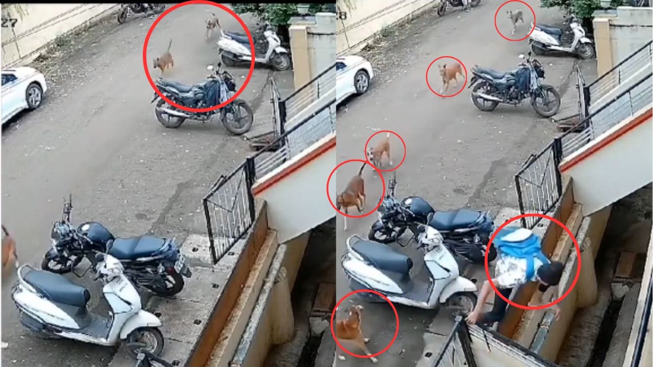 ಬಾಲಕನೊಬ್ಬ ಕೋಚಿಂಗ್ ಕ್ಲಾಸ್ ಮುಗಿಸಿ ಒಂಟಿಯಾಗಿ ರೋಡಲ್ಲಿ ನಡ್ಕೊಂಡು ಬರ್ತಿದ್ದ ಸಂದರ್ಭದಲ್ಲಿ ಸುಮಾರು ನಾಲ್ಕರಿಂದ ಐದು ಬೀದಿ ನಾಯಿಗಳು ಅಟ್ಟಾಡಿಸಿಕೊಂಡು ಬಂದಿವೆ. ತಕ್ಷಣ ಬಾಲಕ ಅಲ್ಲೇ ಪಕ್ಕದಲ್ಲಿದ್ದ ಕಾಂಪೌಂಡ್ ಹಾರುವ ಮೂಲಕ ದಾಳಿಯಿಂದ ಪಾರಾಗಿದ್ದಾನೆ.