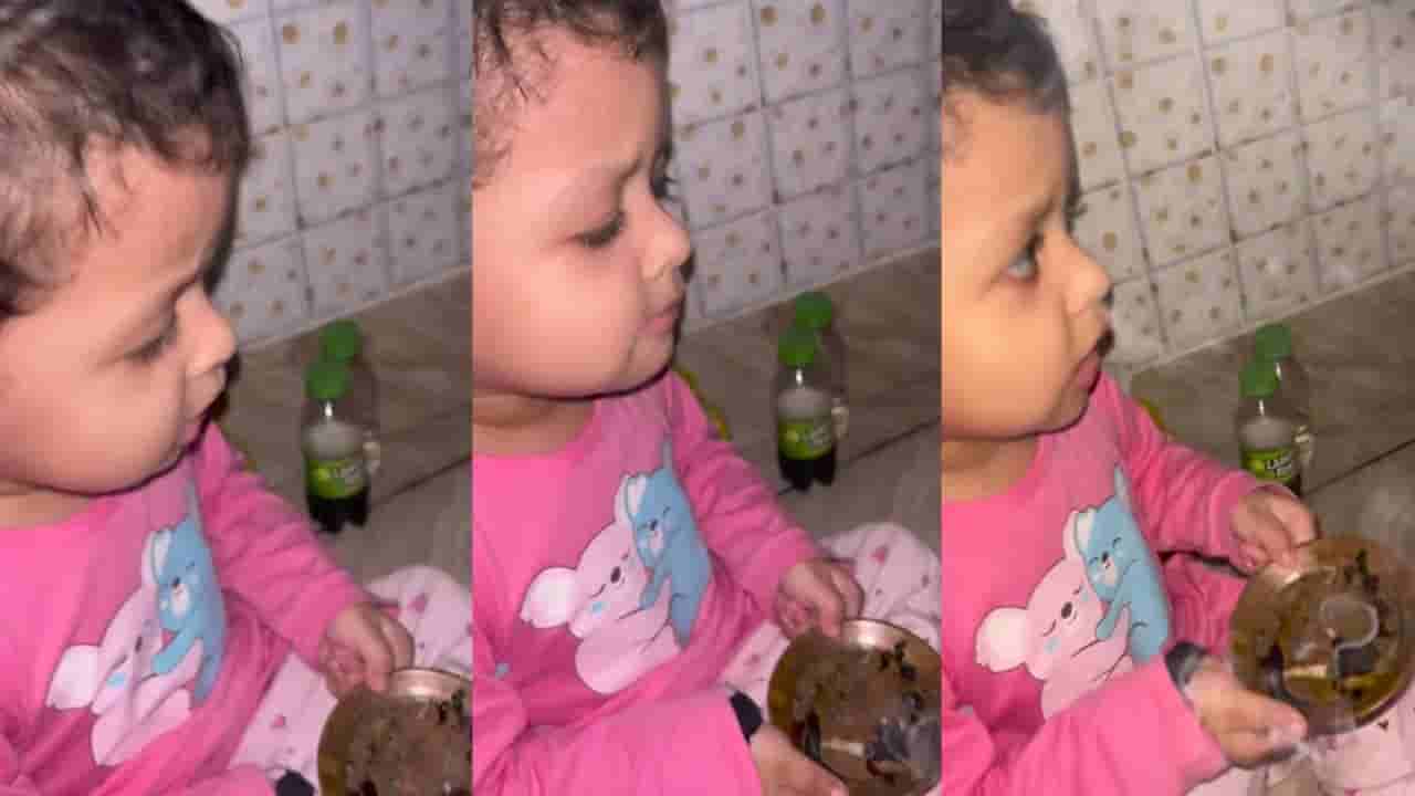 ಮಣಿಕರ್ಣಿಕ ಕಟೋಚ್ (Manikarnika Katoch) ಹೆಸರಿನ ಇನ್ಸ್ಟಾಗ್ರಾಮ್ ಖಾತೆಯಲ್ಲಿ ಹಂಚಿಕೊಳ್ಳಲಾದ ಈ ವಿಡಿಯೋದಲ್ಲಿ ಪುಟಾಣಿಯೊಂದು ದೇವರ ಕೋಣೆಯಲ್ಲಿ ಕುಳಿತುಕೊಂಡು ಕೈಯಲ್ಲಿ ಪೂಜಾ ತಟ್ಟೆ ಹಿಡಿದುಕೊಂಡು ಭಜನೆಯಲ್ಲಿ ಮುಳುಗಿದೆ. ಈ ಪುಟಾಣಿಯೂ “ಅಚ್ಯುತಂ ಕೇಶವಂ” ಎಂಬ ಪ್ರಸಿದ್ಧ ಸ್ತೋತ್ರವನ್ನು ಹಾಡುತ್ತಿರುವುದನ್ನು ಕಾಣಬಹುದು.
