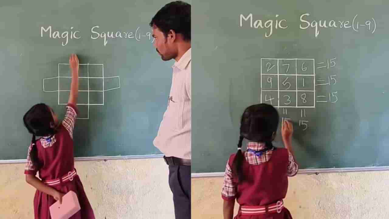 Eliya Mohammed ಹೆಸರಿನ ಖಾತೆಯಲ್ಲಿ ಹಂಚಿಕೊಳ್ಳಲಾದ ವಿಡಿಯೋದಲ್ಲಿ ಪುಟ್ಟ ಹುಡುಗಿಯೊಬ್ಬಳು ಮ್ಯಾಜಿಕ್ ಸ್ಕ್ವೇರ್ ಬಿಡಿಸಲು ತಲೆ ಉಪಯೋಗಿಸಿದ್ದಾಳೆ. ಈ ಪುಟ್ಟ ಹುಡುಗಿಯ ಮುಂದಿದ್ದ ಸವಾಲು, ಈ ಮೋಜಿನ ಚೌಕದಲ್ಲಿ ಬರೆಯಲಾದ ಸಂಖ್ಯೆಗಳನ್ನು ಅಡ್ಡ ಹಾಗೂ ಲಂಬವಾಗಿ ಕೂಡಿಸಿದಾಗ ಉತ್ತರವು ಹದಿನೈದು ಬರಬೇಕು. ಹೀಗಾಗಿ ಈ ಮೋಜಿನ ಸ್ಕ್ವೇರ್ ಬಿಡಿಸಲು ಈ ಜಾಣೆ ಹುಡುಗಿಯೂ ಕೆಲವು ಟ್ರಿಕ್ಸ್ ಬಳಸಿದ್ದಾಳೆ.