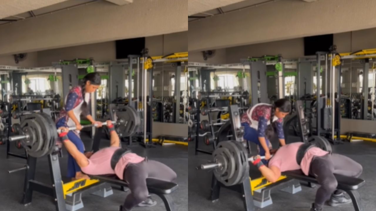 Viral: ಹೆಂಡ್ತಿ ಸಹಾಯದಿಂದ ಬೆಂಚ್ ಪ್ರೆಸ್ ವ್ಯಾಯಾಮ ಮಾಡಲು ಹೋಗಿ ಫಜೀತಿಗೆ ಸಿಲುಕಿದ ವ್ಯಕ್ತಿ; ವಿಡಿಯೋ ವೈರಲ್