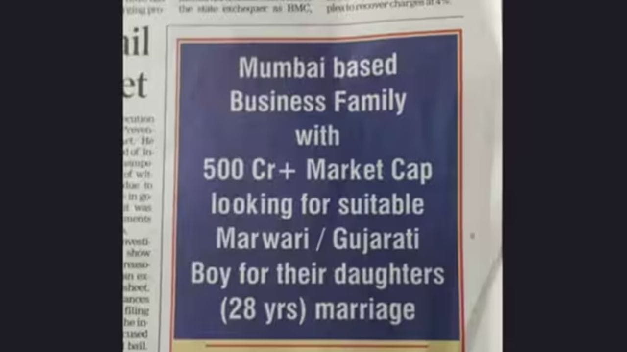 ಪತ್ರಿಕೆಯೊಂದರಲ್ಲಿ ಪ್ರಕಟವಾದ ಈ ಜಾಹೀರಾತಿನಲ್ಲಿ, “500 ಕೋಟಿಗೂ ಅಧಿಕ ಆಸ್ತಿ ಹೊಂದಿರುವ ಮುಂಬೈ ಮೂಲದ ಉದ್ಯಮಿ ಕುಟುಂಬವು ತಮ್ಮ ಮಗಳ (28 ವರ್ಷ) ಮದುವೆಗೆ ಸೂಕ್ತವಾದ ಮಾರ್ವಾಡಿ ಅಥವಾ ಗುಜರಾತಿ ಹುಡುಗನನ್ನು ಹುಡುಕುತ್ತಿದೆ” ಎಂದು ಬರೆಯಲಾಗಿದೆ. ಇಂತಹ ಜಾಹೀರಾತುಗಳಲ್ಲಿ ವಧು ವರರ ವಯಸ್ಸು, ಎತ್ತರ, ಶೈಕ್ಷಣಿಕ ಹಿನ್ನೆಲೆ ಮತ್ತು ಉದ್ಯೋಗದಂತಹ ವೈಯಕ್ತಿಕ ವಿವರಗಳನ್ನು ನೋಡಬಹುದು. ಆದರೆ ಇಲ್ಲಿ ವರ ಬೇಕಾಗಿರುವ ಕುಟುಂಬದ ಮಾರುಕಟ್ಟೆ ಮೌಲ್ಯದ ಬಗ್ಗೆ ಮಾಹಿತಿ ನೀಡಿದೆ.