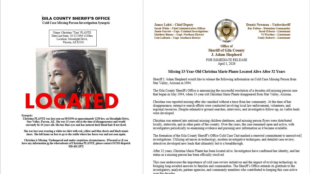 ಅಮೆರಿಕದಲ್ಲಿ 30 ವರ್ಷಗಳ ಹಿಂದೆ ನಾಪತ್ತೆಯಾಗಿದ್ದ ಬಾಲಕಿಯೊಬ್ಬಳು ಜೀವಂತ ಪತ್ತೆಯಾಗಿದ್ದಾಳೆ. ಆಧುನಿಕ DNA ತಂತ್ರಜ್ಞಾನ ಮತ್ತು 'ಕೋಲ್ಡ್ ಕೇಸ್' ತನಿಖೆಯಿಂದ ಈ ಪವಾಡ ಸಾಧ್ಯವಾಗಿದೆ. ಅನಿಶ್ಚಿತತೆಯಲ್ಲಿ ಕಾದಿದ್ದ ಕುಟುಂಬಕ್ಕೆ ಇದು ಆಕಾಶದಿಂದ ಬಂದ ಹೂವಾಗಿದೆ. ದಶಕಗಳ ನಂತರ ಕುಟುಂಬದೊಂದಿಗಿನ ಆಕೆಯ ಮರುಮಿಲನವು ಎಲ್ಲರನ್ನೂ ಭಾವುಕರನ್ನಾಗಿಸಿದೆ. ಪೊಲೀಸರು ಆಕೆಯ ನಾಪತ್ತೆಯ ಹಿಂದಿನ ರಹಸ್ಯ ಭೇದಿಸಲು ತನಿಖೆ ಮುಂದುವರಿಸಿದ್ದಾರೆ.