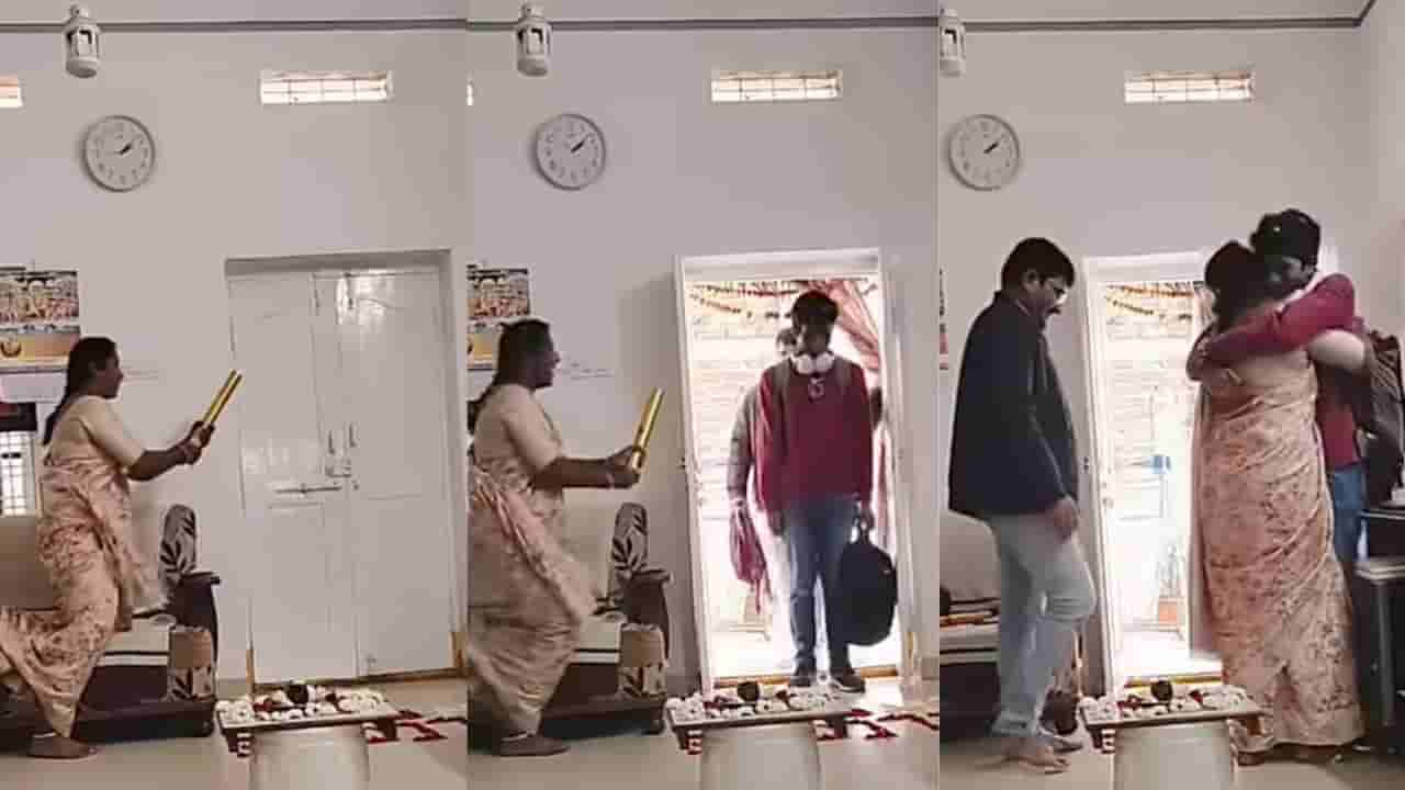 ಪ್ರತಿಯೊಬ್ಬ ತಂದೆ ತಾಯಂದಿರು (parents) ಮಕ್ಕಳ ಭವಿಷ್ಯ ಚೆನ್ನಾಗಿರಬೇಕೆಂದು ಬಯಸುವುದು ಸಹಜ. ಹೀಗಾಗಿ ಓದಿಗಾಗಿ, ಉದ್ಯೋಗಕ್ಕಾಗಿ ದೂರದ ಊರುಗಳಿಗೆ ತಮ್ಮ ಮಕ್ಕಳನ್ನು ಕಳುಹಿಸಿಕೊಡುತ್ತಾರೆ. ಈ ವೇಳೆ ತಮ್ಮ ಮಕ್ಕಳು ಮನೆಗೆ ಬರುತ್ತಾರೆ ಎಂದರೆ ಹೆತ್ತವರಿಗೆ ಆಗುವ ಖುಷಿ ಅಷ್ಟಿಷ್ಟಲ್ಲ. ಈ ವಿಡಿಯೋ ಇದೀಗ ತಾಯಿಯ (mother) ಸಂಭ್ರಮಕ್ಕೆ ಸಾಕ್ಷಿಯಾಗಿದೆ. ಓದಲು ದೂರದ ಊರಿಗೆ ಹೋದ ಮಗನು, ನಾಲ್ಕು ತಿಂಗಳ ಬಳಿಕ ಮನೆಗೆ ಮರಳುತ್ತಿದ್ದಂತೆ ತಾಯಿಯೂ ಅದ್ದೂರಿ ಸ್ವಾಗತ ಕೋರಿದ ಹೃದಯ ಸ್ಪರ್ಶಿ ವಿಡಿಯೋ ಸದ್ಯ ವೈರಲ್ ಆಗಿದೆ. ತಾಯಿ ಮಗನ ಬಾಂಧವ್ಯ ಸಾರುವ ಈ ದೃಶ್ಯವನ್ನು ನೆಟ್ಟಿಗರು ಕಣ್ತುಂಬಿಸಿಕೊಂಡಿದ್ದಾರೆ.