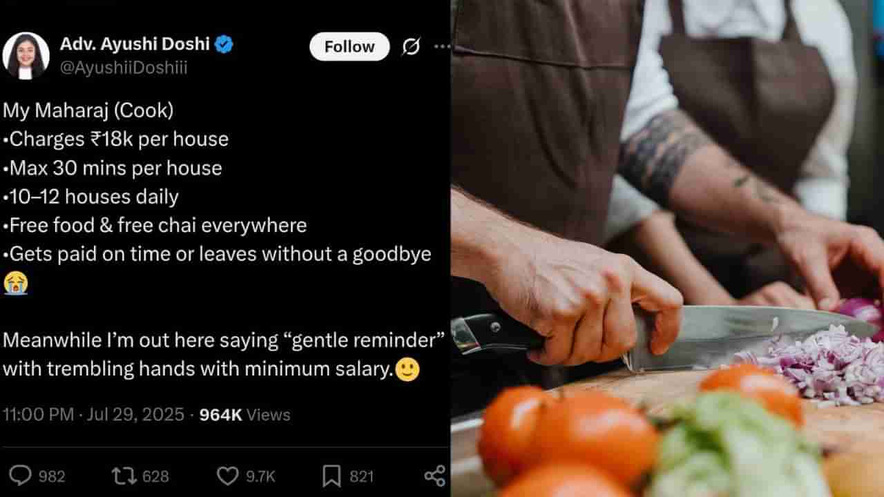 @AyushiiDoshii ಹೆಸರಿನ ಎಕ್ಸ್ ಖಾತೆಯಲ್ಲಿ ಮಹಿಳೆಯೊಬ್ಬರು ತಮ್ಮ ಮನೆಗೆ ಬರುವ ಅಡುಗೆಯವ ತಿಂಗಳಿಗೆ ಎಷ್ಟು ಸಂಪಾದನೆ ಮಾಡ್ತಾನೆ ಎಂದು ಈ ಪೋಸ್ಟ್ನಲ್ಲಿ ತಿಳಿಸಿದ್ದಾರೆ. ನನ್ನ ಮಹಾರಾಜ್ (ಅಡುಗೆಯವ)’ ಪ್ರತಿ ದಿನ ಅರ್ಧ ಗಂಟೆ ಕೆಲಸ ಮಾಡುತ್ತಾನೆ. ತಿಂಗಳಿಗೆ 18,000 ರೂ ಪಡೆಯುತ್ತಾರೆ . ಹೀಗೆ ಹತ್ತು ಹನ್ನೆರಡು ಮನೆಗಳಲ್ಲಿ ಪ್ರತಿದಿನ ಕೆಲಸ ಮಾಡುತ್ತಾರೆ. ಉಚಿತ ಊಟ ಚಹಾ ಸಿಗುತ್ತದೆ. ಒಂದು ವೇಳೆ ಸರಿಯಾಗಿ ಸಂಬಳ ಕೊಡದ್ದಿದರೆ ವಿದಾಯ ಹೇಳದೇ ಹೊರಟು ಹೋಗುತ್ತಾರೆ ಎಂದು ಇಲ್ಲಿ ಬರೆಯಲಾಗಿದೆ.