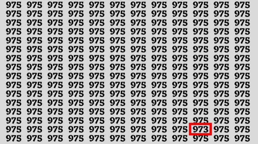 ಇಲ್ಲಿರುವ ಫೋಟೋದಲ್ಲಿ ನೀವು ಸಾಕಷ್ಟು 975 ಸಂಖ್ಯೆ ನೋಡಬಹುದು. ಆದರೆ ಅಷ್ಟೂ ಸಂಖ್ಯೆಗಳ ಮಧ್ಯೆ ಅಡಗಿರುವ ಒಂದೇ ಒಂದು ಸಂಖ್ಯೆ 973 ರನ್ನು ಎಲ್ಲಿದೆ ಎಂದು ನೀವು ಗುರುತಿಸಬೇಕಿದೆ. ನೀವು ಅತಿ ಕಡಿಮೆ ಸಮಯದಲ್ಲಿ ಪತ್ತೆ ಹಚ್ಚಿದರೆ ನಿಮ್ಮ ಮಿದುಳಿನ ಕಾರ್ಯ ಮತ್ತು ದೃಷ್ಟಿ ಚುರುಕಾಗುತ್ತದೆ ಎನ್ನುತ್ತಾರೆ ತಜ್ಞರು.