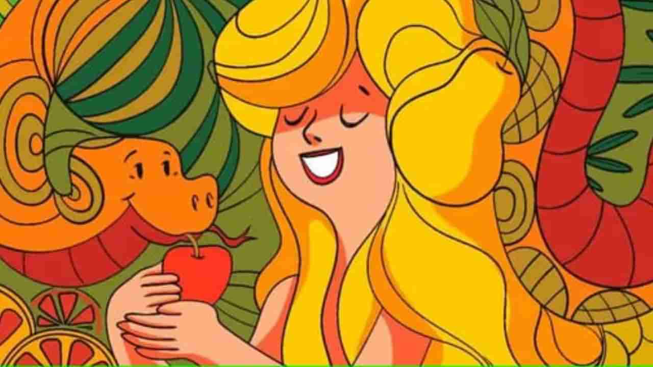 r/OpticalIllusions ಹೆಸರಿನ ರೆಡ್ಡಿಟ್ ಖಾತೆಯಲ್ಲಿ ಹಂಚಿಕೊಳ್ಳಲಾದ ಈ ಆಪ್ಟಿಕಲ್ ಭ್ರಮೆವುಳ್ಳ ಚಿತ್ರದಲ್ಲಿ, ಕಾಡಿನ ದೃಶ್ಯದ ರೇಖಾಚಿತ್ರದಲ್ಲಿ ಮರೆಮಾಡಲಾಗಿರುವ ಎಂಟು ಹಣ್ಣುಗಳನ್ನು ಹುಡುಕುವ ಸವಾಲು ನೀಡಲಾಗಿದೆ. ಈ ಚಿತ್ರದಲ್ಲಿ ಉದ್ದವಾದ, ಹರಿಯುವ ಚಿನ್ನದ ಕೂದಲಿನ ಮಹಿಳೆ ನಗುತ್ತಿರುವಂತೆ, ಅವಳ ಒಂದು ಕೈಯಿಂದ ಒಂದೇ ಒಂದು ಸೇಬು ನೇತಾಡುತ್ತಿದೆ. ಇತ್ತ ಸ್ನೇಹಪರವಾಗಿ ಕಾಣುವ ಹಾವು ಅವಳನ್ನು ನೋಡುತ್ತಿರುವಂತೆ ಚಿತ್ರಿಸಲಾಗಿದೆ. ಇದೇ ಚಿತ್ರದಲ್ಲಿ ವಿವಿಧ ಬಗೆಯ ಹಣ್ಣುಗಳಿದ್ದು, ಅವುಗಳನ್ನು ಪತ್ತೆ ಹಚ್ಚಬೇಕು.