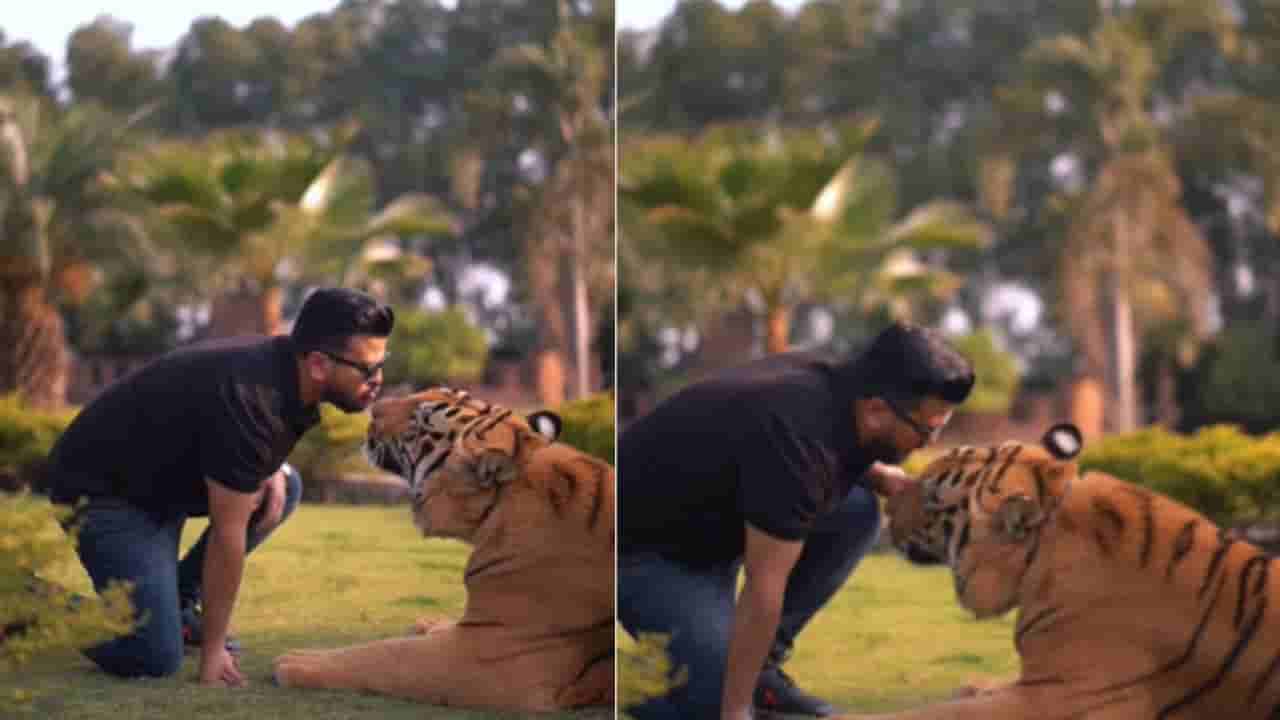 ಕ್ರೂರ ಪ್ರಾಣಿ (quarrel animals) ಗಳ ಹೆಸರು ಕೇಳಿದರೆ ಸಾಕು ಒಂದು ಕ್ಷಣ ಮೈನಡುಕ ಶುರುವಾಗುತ್ತದೆ. ಇನ್ನೇನು ಕಾಡಿನಿಂದ ನಾಡಿಗೆ ಬಂದಿದ್ದಾವೆ ಎನ್ನುವ ಸುದ್ದಿ ಕಿವಿಗೆ ಬಿದ್ದರೆ ಸಾಕು, ಓಡಾಡಲು ಕೂಡ ಧೈರ್ಯ ಬರಲ್ಲ. ಆದರೆ ಕೆಲವು ಯುವಕರು ಈ ಪ್ರಾಣಿಗಳ ಜೊತೆಗೆ ಸೆಲ್ಫಿ (selfi) ಕ್ಲಿಕಿಸಲು ಅಥವಾ ಅವುಗಳ ಜೊತೆಗೆ ಚೆಲ್ಲಾಟ ಆಡಲು ಹೋಗಿ ಅಪಾಯಗಳನ್ನು ಮೈ ಮೇಲೆ ಎಳೆದುಕೊಳ್ಳುತ್ತಾರೆ. ಇದೀಗ ವೈರಲ್ (viral) ಆಗಿರುವ ವಿಡಿಯೋದಲ್ಲಿ ಪಾಕಿಸ್ತಾನಿ ಇನ್ಫ್ಲುಯೆನ್ಸರ್ ನೌಮನ್ ಹುಸೇನ್ (pakistani influencer nouman hussan) ಹುಲಿಗೆ ಮುತ್ತಿಟ್ಟಿದ್ದಾನೆ. ಈ ವಿಡಿಯೋ ವೈರಲ್ ಆಗುತ್ತಿದ್ದಂತೆ ಸೋಶಿಯಲ್ ಮೀಡಿಯಾದಲ್ಲಿ ಬಳಕೆದಾರರು ಖಾರವಾಗಿ ಕಾಮೆಂಟ್ ಗಳನ್ನು ಮಾಡಿದ್ದಾರೆ.
