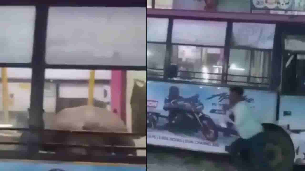 ಮದವೇರಿದಾಗ ಆನೆ, ಗೂಳಿ ಸೇರಿದಂತೆ ಇನ್ನಿತರೆ ಪ್ರಾಣಿಗಳು ಎಲ್ಲೆಂದರಲ್ಲಿ ನುಗ್ಗಿ ದೊಡ್ಡ ಅವಾಂತರಗಳನ್ನೇ ಸೃಷ್ಟಿಸುತ್ತವೆ. ಹೀಗೆ ಹೆಚ್ಚಾಗಿ ಜನನಿಬಿಡ ಪ್ರದೇಶಗಳಿಗೆ ನುಗ್ಗಿ ಪ್ರಾಣಿಗಳು ಅವಾಂತರಗಳನ್ನು ಸೃಷ್ಟಿಸುವುದಕ್ಕೆ ಸಂಬಂಧಿಸಿ ಇಂತಹ ಸಾಕಷ್ಟು ವಿಡಿಯೋಗಳು ಸೋಷಿಯಲ್ ಮೀಡಿಯಾದಲ್ಲಿ ಆಗಾಗ್ಗೆ ಕಾಣಸಿಗುತ್ತಿರುತ್ತವೆ. ಇಲ್ಲೊಂದು ಅಂತಹದ್ದೇ ಘಟನೆ ನಡೆದಿದ್ದು, ಏಕಾಏಕಿ ಬಸ್ಸಿನೊಳಗೆ ನುಗ್ಗಿದ ಗೂಳಿ ಕಿಟಕಿ ಗಾಜುಗಳನ್ನು ಪುಡಿ ಮಾಡಿ ಅವಾಂತರ ಸೃಷ್ಟಿಸಿದೆ. ಇದರಿಂದ ಭಯಭೀತರಾಗ ಕಂಡಕ್ಟರ್ ಮತ್ತು ಡ್ರೈವರ್ ಪ್ರಾಣ ಉಳಿದರೆ ಸಾಕೆನ್ನುತ್ತಾ ಬಸ್ಸಿನಿಂದ ಕೆಳ ಜಿಗಿದು ಓಡಿ ಹೋಗಿದ್ದಾರೆ. ಈ ವಿಡಿಯೋ ಇದೀಗ ಭಾರೀ ವೈರಲ್ ಆಗುತ್ತಿದೆ.