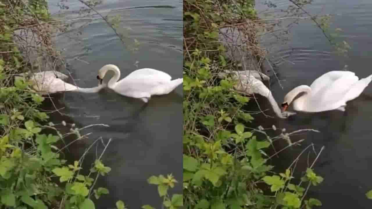 ವೈರಲ್ ಆಗುತ್ತಿರುವ ವಿಡಿಯೋದಲ್ಲಿ ತನ್ನ ಕೊಕ್ಕಿನ ಸಹಾಯದಿಂದ ಹಂಸವೊಂದು ಸತ್ತು ಹೋದ ಸಂಗಾತಿಯನ್ನು ಎಬ್ಬಿಸಲು ಯತ್ನಿಸುತ್ತಿರುವ ದೃಶ್ಯವನ್ನು ಕಾಣಬಹುದು. ಎದ್ದೇಳು, ಪ್ಲೀಸ್ ಎದ್ದೇಳು ಎನ್ನುತ್ತಾ ಕೊಳದಲ್ಲಿ ಸತ್ತು ಬಿದ್ದಿದ್ದ ಸಂಗಾತಿಯನ್ನು ಎಬ್ಬಿಸಲು ಹಂಸ ಶತಪ್ರಯತ್ನಪಟ್ಟಿದ್ದು, ಈ ಮನಕಲಕುವ ದೃಶ್ಯ ಕಣ್ಣಂಚಲಿ ನೀರು ತರಿಸುವಂತಿದೆ.