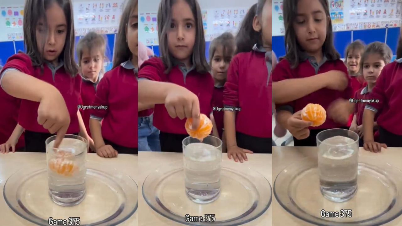 ಆದರೆ ಒಬ್ಬ ಹುಡುಗಿಯೂ ಲೋಟದಲ್ಲಿದ್ದ ಕಿತ್ತಳೆ ಹಣ್ಣನ್ನು ಹೊರಗೆ ತೆಗೆದಿದ್ದಾಳೆ. ಈ ಪುಟ್ಟ ಹುಡುಗಿ ನೀರು ಚೆಲ್ಲದಂತೆ ಈ ಹಣ್ಣನ್ನು ತೆಗೆಯಲು ಒಂದು ಬೆರಳನ್ನು ಲೋಟದ ಒಳಗೆ ಹಾಕಿ ಹಾಕಿ ನೀರನ್ನು ತಿರುಗಿಸುವುದನ್ನು ನೋಡಬಹುದು. ಈ ವೇಳೆಯಲ್ಲಿ ಬೆರಳು ಆಡಿಸ್ತಿದ್ದಂತೆ ಈ ಹಣ್ಣು ನಿಧಾನವಾಗಿ ಮೇಲೆ ಬಂದಿದೆ, ನೀರು ಚೆಲ್ಲಲಿಲ್ಲ. ಈ ಹುಡುಗಿಯ ಪ್ಲ್ಯಾನ್ ವರ್ಕ್ ಆಗಿರುವುದನ್ನು ನೋಡಬಹುದು.