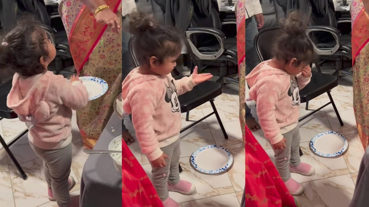akkacheliaanimayalu ಹೆಸರಿನ ಖಾತೆಯಲ್ಲಿ ಪುಟಾಣಿಯ ವಿಡಿಯೋವೊಂದನ್ನು ಶೇರ್ ಮಾಡಿಕೊಳ್ಳಲಾಗಿದೆ. ಈ ವಿಡಿಯೋದಲ್ಲಿ ಟೇಬಲ್ ಮೇಲೆ ವಿವಿಧ ಬಗೆಯ ಭಕ್ಷ್ಯಗಳನ್ನು ಇಡಲಾಗಿದೆ. ಪುಟಾಣಿಯೊಂದು ತಟ್ಟೆಯನ್ನು ಹಿಡಿದು ತಾನೇ ಹಾಕಿಕೊಳ್ಳುವೆ ಎನ್ನುತ್ತಿದೆ. ಆ ಪುಟಾಣಿ ತಾಯಿ ಬೇಡ ಅವರು ನಿಂಗೆ ಹೊಡೀತಾರೆ ಎನ್ನುತ್ತಿದ್ದಂತೆ ಕೈಯಲ್ಲಿದ್ದ ತಟ್ಟೆಯನ್ನು ಸಿಟ್ಟಿನಿಂದ ಬಿಸಾಡಿದೆ. ಅಷ್ಟೇ ಅಲ್ಲದೇ ಕೈಯಿಂದ ತನ್ನ ತಲೆಯನ್ನು ಜಜ್ಜಿಕೊಳ್ಳುತ್ತಾ ತನ್ನದೇ ಭಾಷೆಯಲ್ಲಿ ಎಲ್ಲರಿಗೂ ಬೈಯುತ್ತಿರುವುದನ್ನು ಕಾಣಬಹುದು.