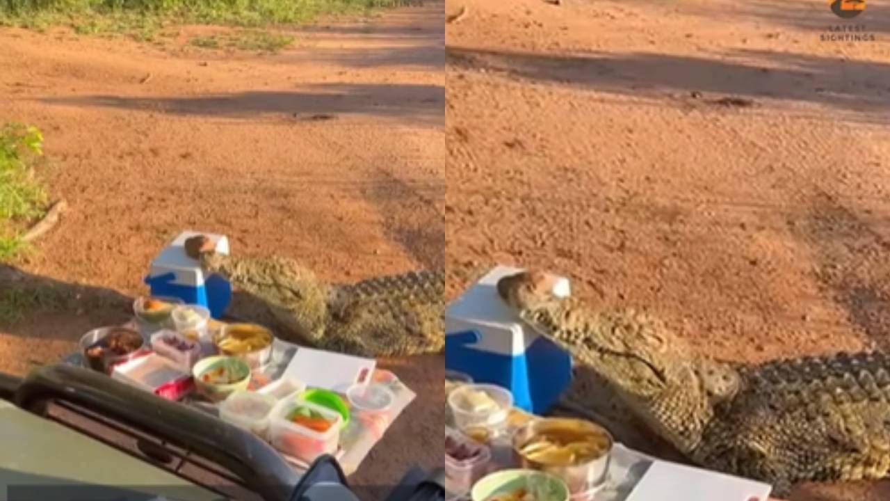 ಪಿಕ್ನಿಕ್ ಮಾಡಲು ಬಂದ ಕುಟುಂಬವೊಂದರ ಕೂಲರ್ ಬಾಕ್ಸ್ನ್ನು ಮೊಸಳೆಗರಡು ಕದ್ದು ಕೊಂಡು ಹೋಗಿರುವ ವಿಡಿಯೋ ಸಾಮಾಜಿಕ ಜಾಲತಾಣದಲ್ಲಿ ಭಾರೀ ವೈರಲ್ ಆಗಿದೆ.