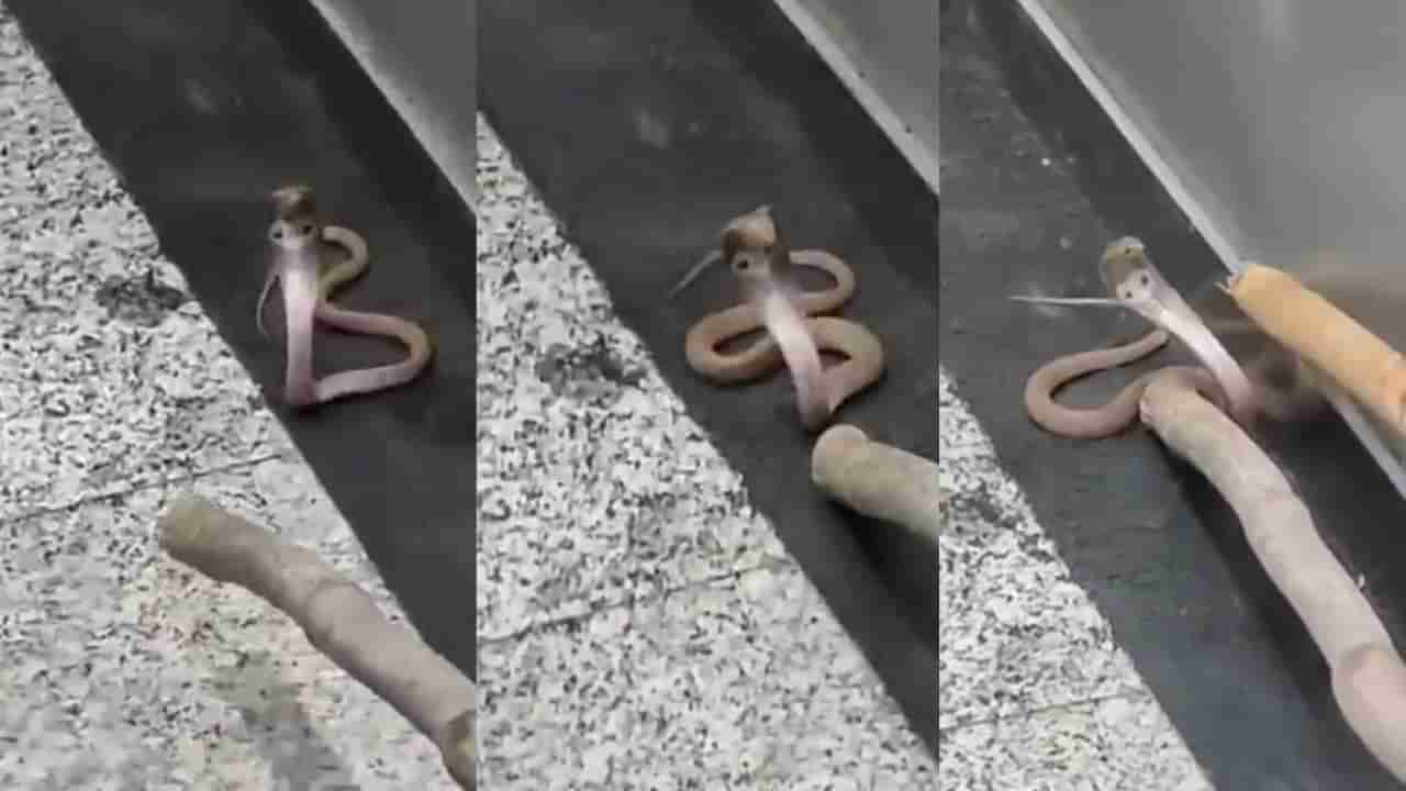 ಮಹೇಂದರ್ ಮಹಿ (Mahender Mahi) ಹೆಸರಿನ ಎಕ್ಸ್ ಖಾತೆಯಲ್ಲಿ ಶೇರ್ ಮಾಡಲಾದ ವಿಡಿಯೋದಲ್ಲಿ ನಾಗರಹಾವೊಂದು ಬಹುಮಹಡಿ ಕಟ್ಟಡದ ಲಿಫ್ಟ್ವೊಂದರಲ್ಲಿ ಪ್ರತ್ಯಕ್ಷವಾಗಿರುವುದನ್ನು ಕಾಣಬಹುದು. ಅಪಾರ್ಟ್ಮೆಂಟ್ನ ನಿರ್ವಹಣಾ ಸಿಬ್ಬಂದಿಯೂ ಈ ನಾಗರಹಾವನ್ನು ಕೋಲಿನ ಸಹಾಯದಿಂದ ಕಸದ ಬುಟ್ಟಿಯೊಳಗೆ ಹಾಕುತ್ತಿರುವುದನ್ನು ಕಾಣಬಹುದು.