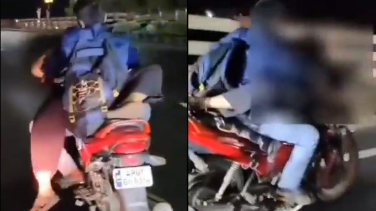 ವಿಜಯವಾಡ, ಮೇ 25 : ಪ್ರೀತಿ (love) ಪ್ರೇಮ ಕುರುಡು, ಪ್ರೀತಿಗೆ ಕಣ್ಣಿಲ್ಲ ಎಂದು ಹೇಳುವುದನ್ನು ನೀವು ನೋಡಿರಬಹುದು. ಆದರೆ ಕೆಲವೊಮ್ಮೆ ಈ ಪ್ರೀತಿಯಲ್ಲಿ ಬಿದ್ದವರಿಗೆ ಜಗತ್ತಿನ ಪರಿಜ್ಞಾನವೇ ಇರಲ್ಲ ಎಂದೆನಿಸುತ್ತದೆ. ಕೆಲವರು ಸಾರ್ವಜನಿಕ ಸ್ಥಳಗಳಲ್ಲಿ ಮಿತಿ ಮೀರಿ ವರ್ತಿಸುತ್ತಿರುವುದನ್ನು ನೋಡುತ್ತೀರಿ. ಕೆಲ ಪ್ರೇಮಿಗಳು, ರೈಲು, ಮೆಟ್ರೋ, ಬಸ್, ಪಾರ್ಕ್ ಸೇರಿದಂತೆ ಸಾರ್ವಜನಿಕ ಸ್ಥಳಗಳಲ್ಲಿ ಮುಜುಗರವಾಗುವಂತೆ ನಡೆದುಕೊಳ್ಳುತ್ತಾರೆ. ಇದೀಗ ವೈರಲ್ ಆಗಿರುವ ವಿಡಿಯೋದಲ್ಲಿ ಚಲಿಸುತ್ತಿದ್ದ ಬೈಕ್ (bike) ನಲ್ಲೇ ಜೋಡಿಹಕ್ಕಿಗಳು ರೊಮ್ಯಾನ್ಸ್ ಮಾಡಿದ್ದಾರೆ. ಆಂಧ್ರ ಪ್ರದೇಶದ ವಿಜಯವಾಡ ನ್ಯಾಷನಲ್ ಹೈ ವೇ – 16 ರಾಮಲಿಂಗೇಶ್ವರ ನಗರ ಫ್ಲೈ ಓವರ್ (NH- 16 Ramalingeshwara Nagar Flyover in Vijayawada) ನಲ್ಲಿ ಈ ರೀತಿಯ ದೃಶ್ಯವು ಕಂಡು ಬಂದಿದೆ.