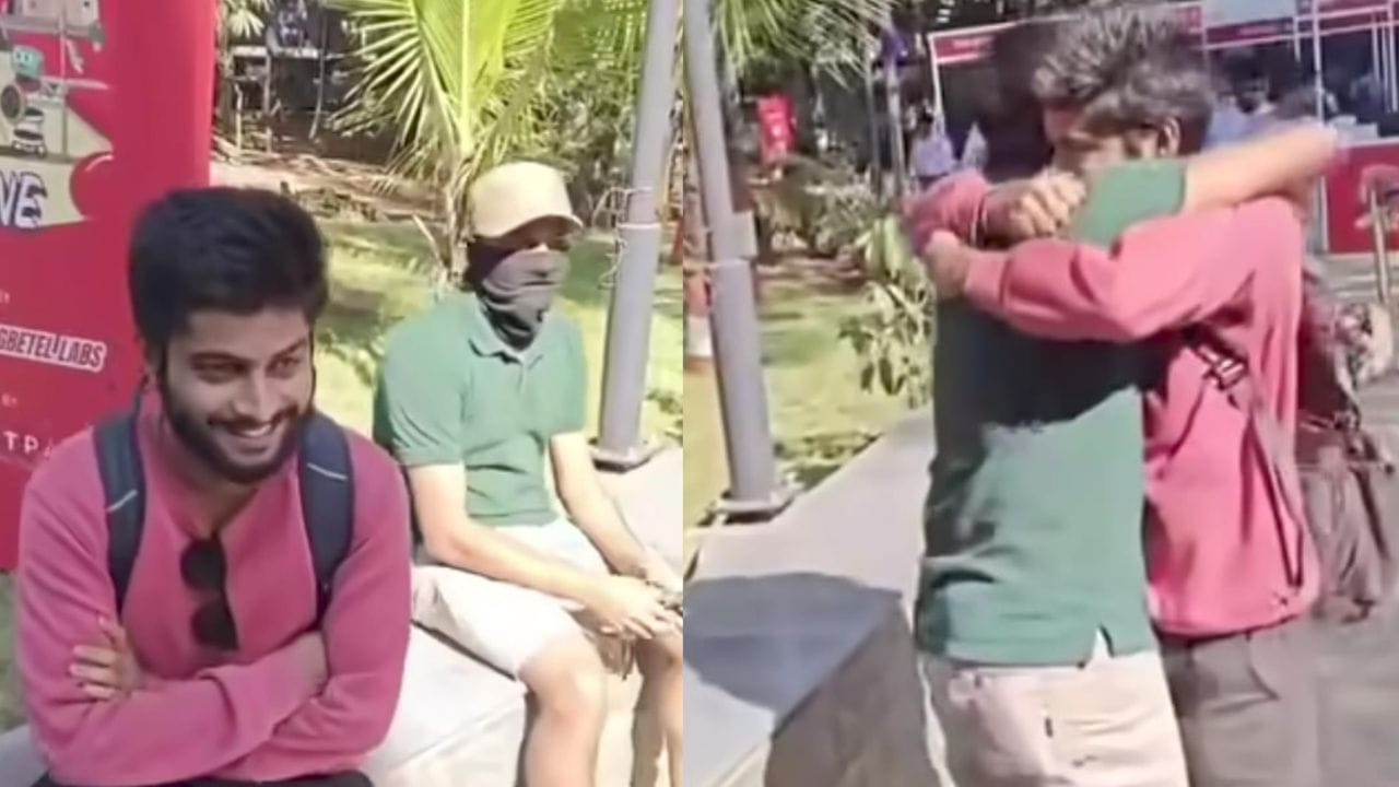 ಈ ವಿಡಿಯೋದಲ್ಲಿ ಒಬ್ಬ ವ್ಯಕ್ತಿ ಅಲ್ಲೇ ಇದ್ದವರೊಂದಿಗೆ ಮಾತನಾಡುತ್ತಾ ಕುಳಿತಿರುವುದನ್ನು ಕಾಣಬಹುದು. ಇದ್ದಕ್ಕಿದ್ದಂತೆ ಮುಖಕ್ಕೆ ಕರ್ಚಿಫ್ ಸುತ್ತಿಕೊಂಡ ವ್ಯಕ್ತಿಯೂ ಅಲ್ಲೇ ಕುಳಿತಿದ್ದ ವ್ಯಕ್ತಿಯ ಪಕ್ಕದಲ್ಲಿ ಕುಳಿತು ಅವನನ್ನು ನೋಡುತ್ತ ಇರುವುದನ್ನು ಕಾಣಬಹುದು. ಆದರೆ ಈ ವ್ಯಕ್ತಿಗೆ ಮುಖವಾಡ ಧರಿಸಿದ ವ್ಯಕ್ತಿ ಆಪ್ತ ಸ್ನೇಹಿತ ಎಂದು ತಿಳಿದಿಲ್ಲ. 8000 ಮೈಲಿ ದಾಟಿ ತನ್ನ ಸ್ನೇಹಿತನನ್ನು ನೋಡಲು ಬಂದಿದ್ದು ಸರ್ಪ್ರೈಸ್ ನೀಡಿದ್ದಾನೆ. ಅರ್ಧ ಮುಖಕ್ಕೆ ಮುಚ್ಚಲಾದ ಕರ್ಚಿಫ್ ತೆಗೆಯುತ್ತಿದ್ದಂತೆ ಪುಣೆ ಮೂಲದ ಸ್ನೇಹಿತನಿಗೆ ಶಾಕ್ ಆಗಿದ್ದು, ಮುಖಭಾವವೇ ಬದಲಾಗಿದೆ. ಪರಸ್ಪರ ಒಬ್ಬರೊಬ್ಬರನ್ನು ಅಪ್ಪಿಕೊಳ್ಳುವುದರೊಂದಿಗೆ ವಿಡಿಯೋ ಕೊನೆಗೊಳ್ಳುತ್ತದೆ.